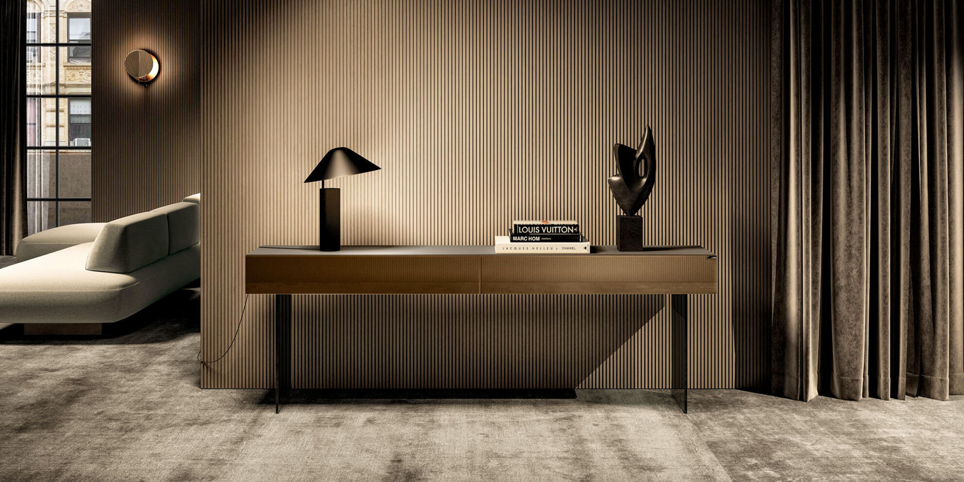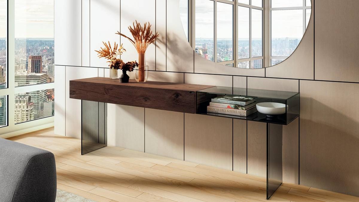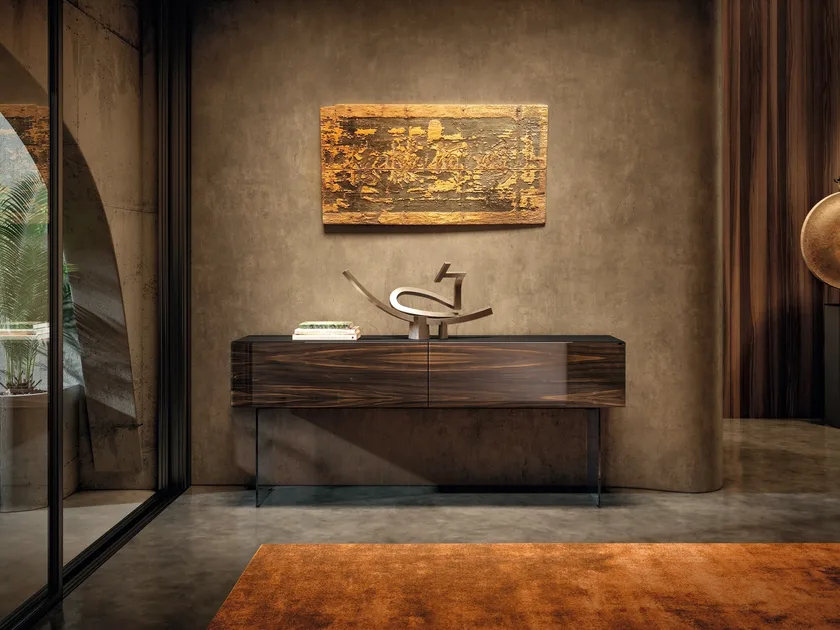 If your foyer or hallway requires some extra style, the 36e8 1367 console table by Lago is the way to go. The sleek structure features a rectangular top with two drawers and glass legs that all stand out against one another. With plenty of room on top and in the cabinets, there is plenty of space for storage and display opportunities. Thanks to quality construction and the use of the best quality materials, this product will be a fixture in your home for the long haul.