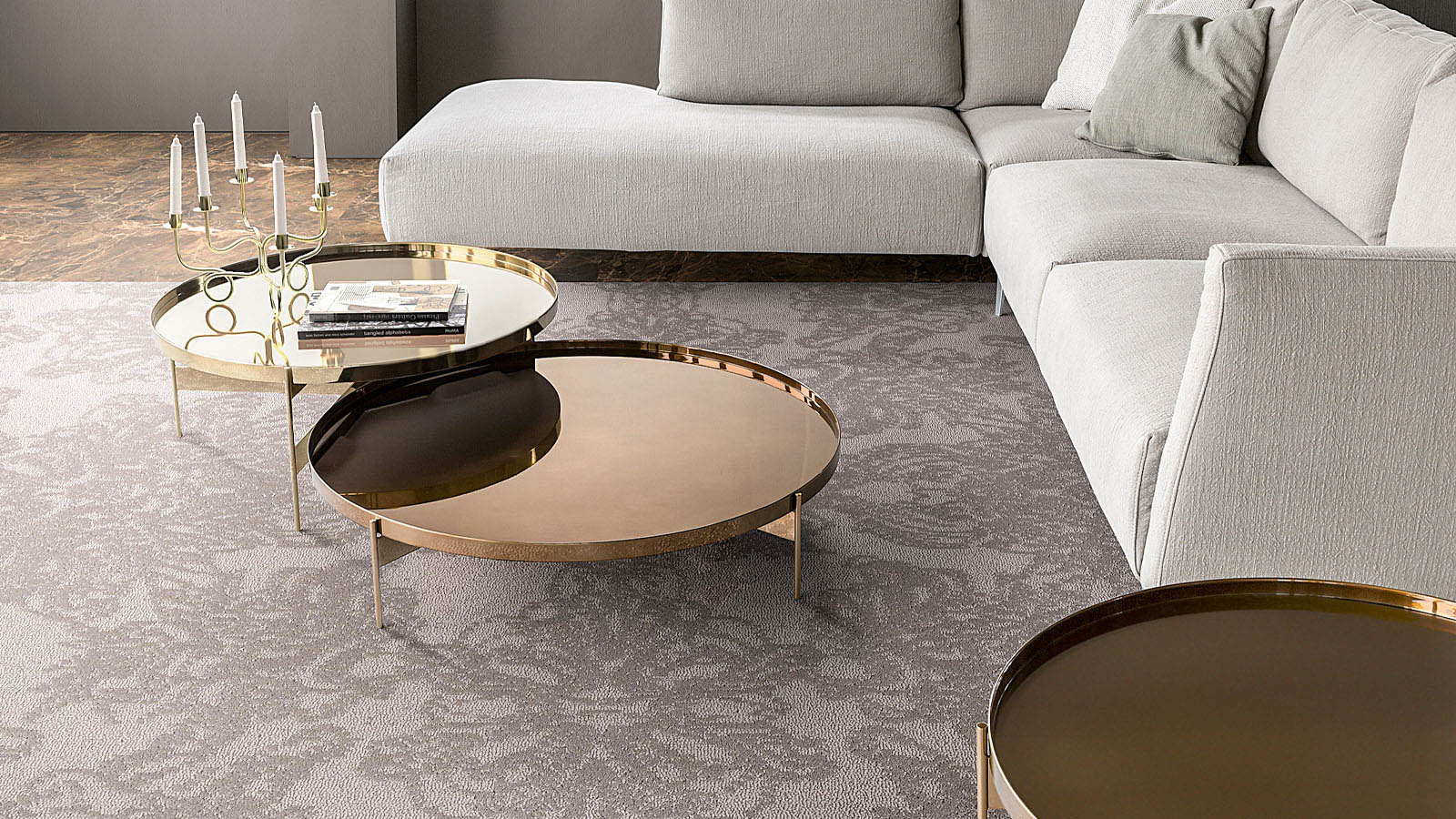 The simplicity of its design conceals interesting and well-gauged geometric and constructive choices that explore and exploit the theme of the circle and symmetry. The base is composed of three slender metal legs, connected by a spoked structure that also supports the top, which can be raised for use as a handy tray, separated from the structure by a simple gesture. The combinations of finishes for the top and base can be playful or elegant, just as the combinations of multiple tables from the Abaco series can be varied and original.
