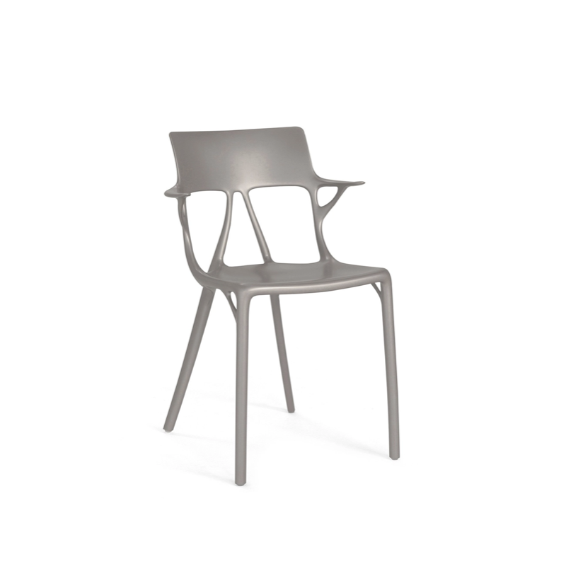 Kartell continues its ongoing commitment to sustainability with eco-friendly products which are part of the broader project expressed by the industrial manifesto Kartell loves the planet. A.I. is the chair created for the first time ever using recycled material, in which aesthetics and structural requirements remain unaltered, blending seamlessly with generative design. The added value of A.I. lies in the fact that it is the first product family conceived by Artificial Intelligence in response to input received from the designer (Philippe Starck) and the know-how of the company (Kartell). Specifically, creative thinking, company know-how and artificial intelligence have merged to develop a chair model based on an algorithm that respects the original brief of the designer and the company a comfortable product with the structural strength and solidity required while upholding one of Kartell’s main values: to be an injection-moulded industrial product of outstanding aesthetic quality.