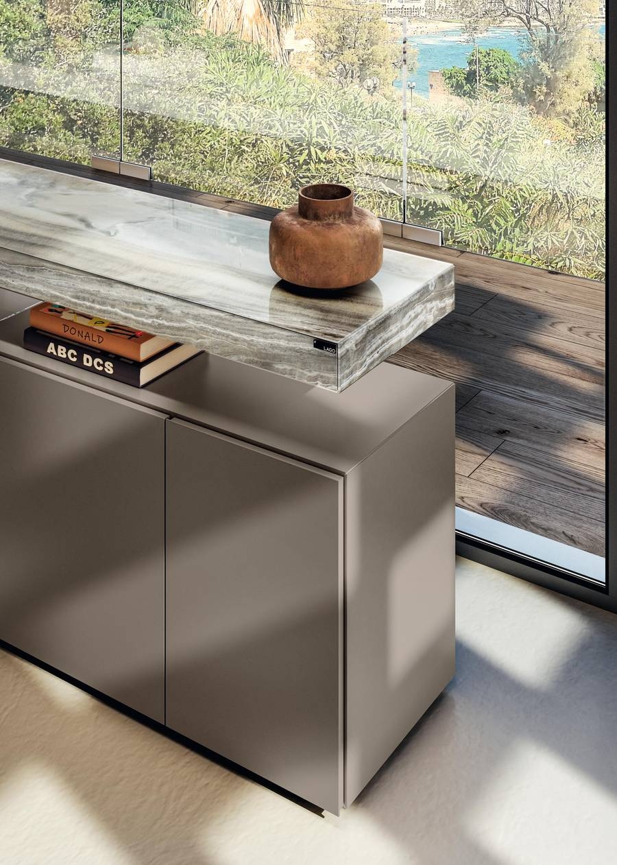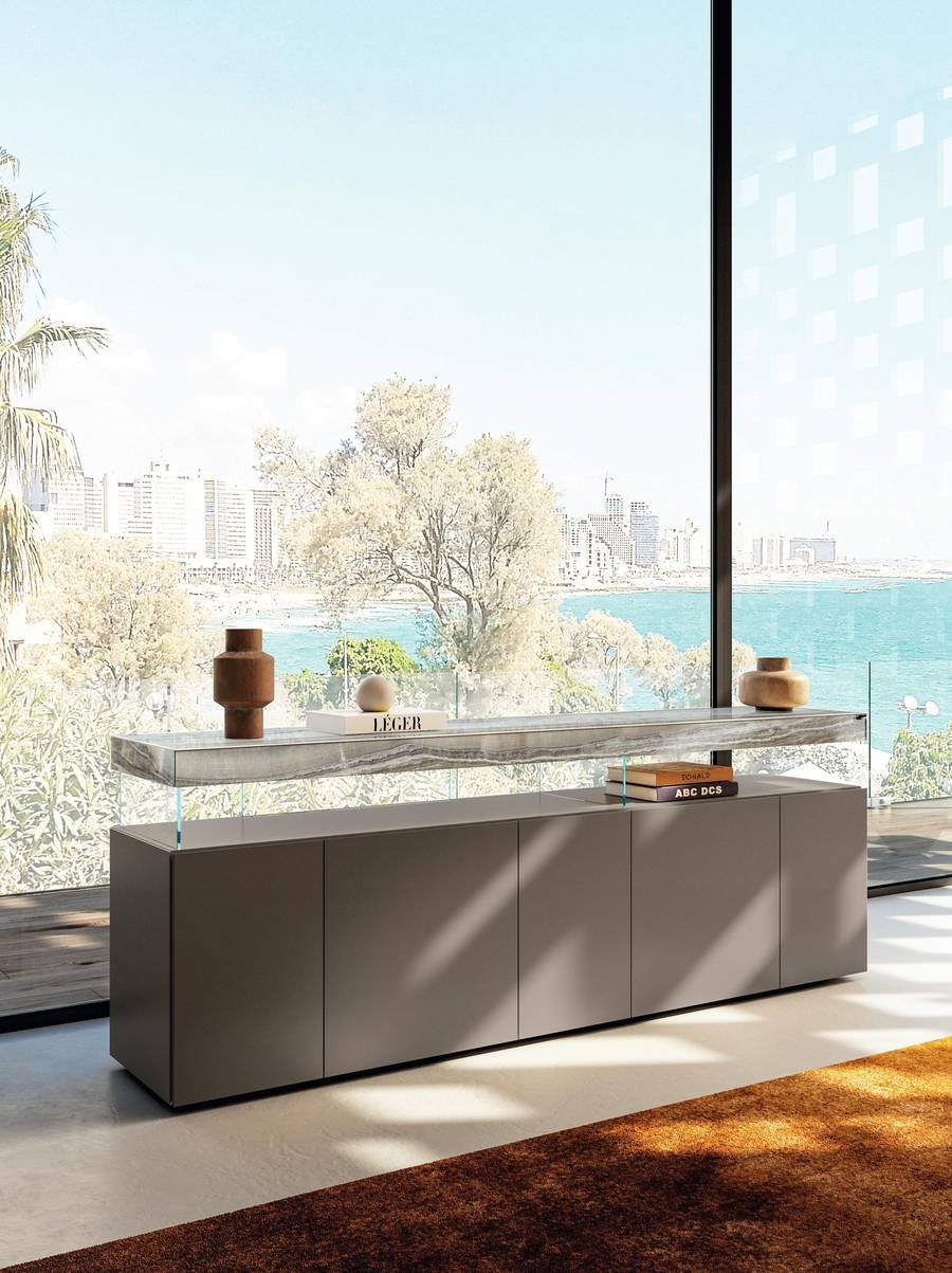 The Air system has expanded to include a modern sideboard that plays on the contrast between solids and voids, inverting the order of factors: the piece seems to float in air, supported by transparent tempered glass sheets to create a surprising effect of suspension. Free-standing and available finished on both sides, the Air sideboard can also be placed in the middle of the room, lending light and luminosity to the space.Recent articles
