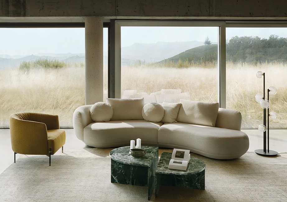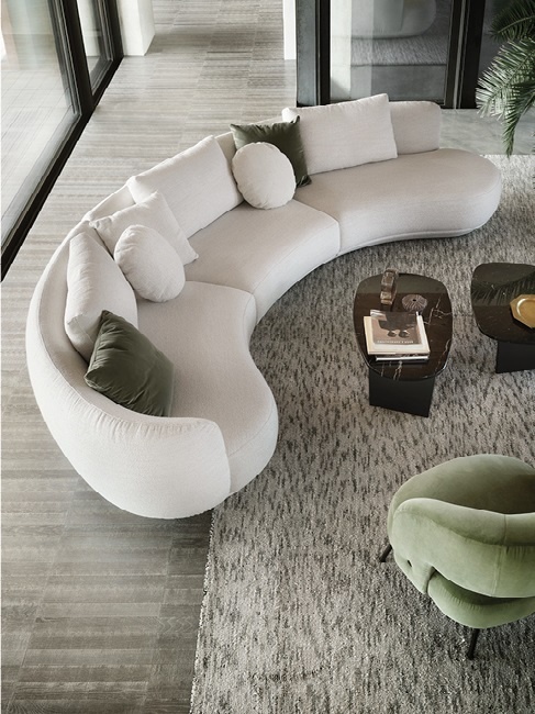 Amalfi is a sofa with sinuous and sensual shapes. Inspired by organic shapes that recall the seventies design, It transforms any space into an elegant and refined landscape by becoming its protagonist.
