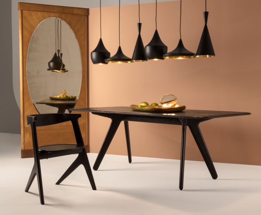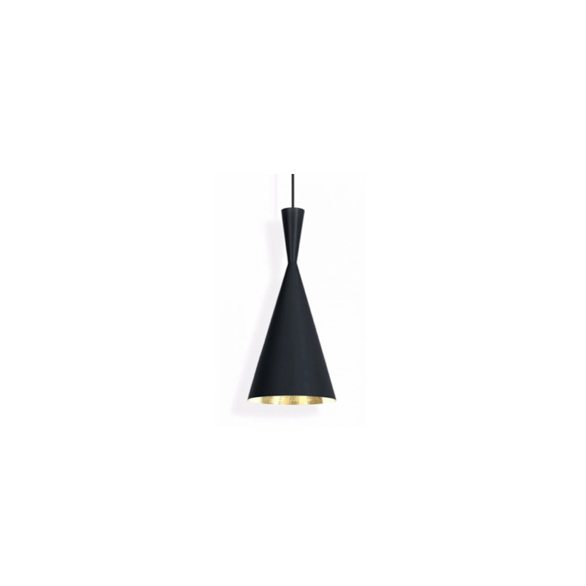 Beat Tall is a medium-sized ceiling light in matte black and features a contrasting warm, golden interior. Made from hand spun brass sculpted by artisan craftsmen in Northern India, the creation of this Beat light is part of an ancient process that takes four days to complete. Featuring our intergrated LED module, the beaten interior is re-purposed to refract and reflect a soft and warm luminosity.