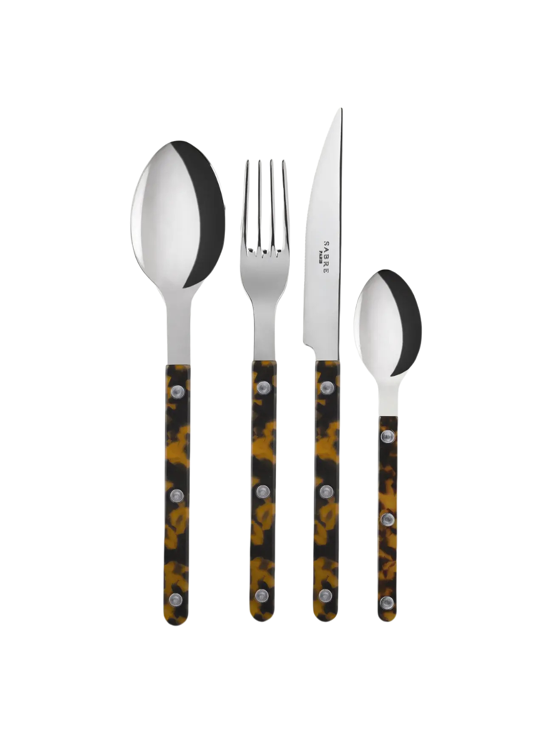 The Sabre 4-piece sets are comprised of a soup spoon, a dinner fork, a dinner knife and a teaspoon. This 4-piece set offers the perfect combination for your day-to-day meals._
