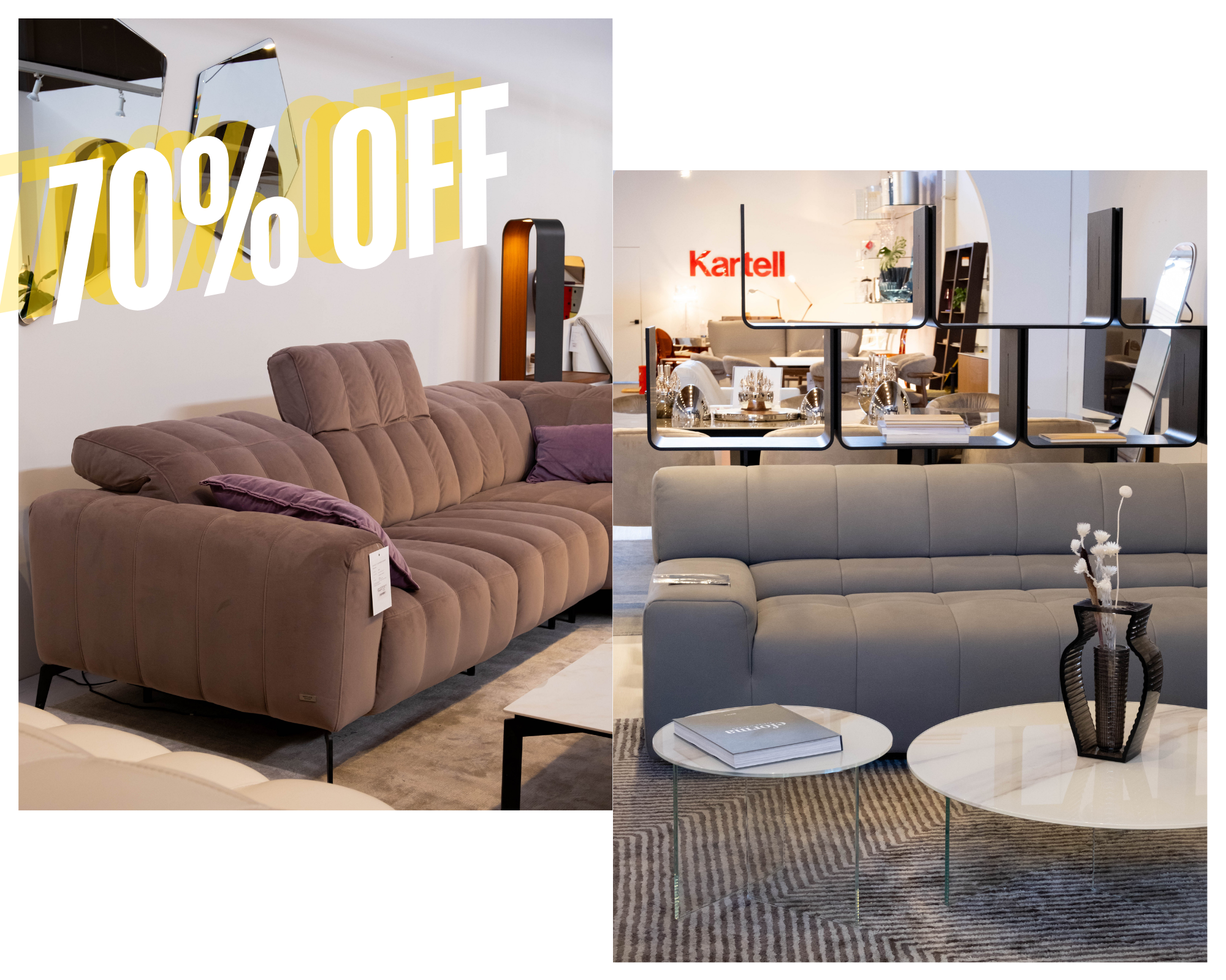 Includes pieces from brands like Lago, Pianca, Natuzzi, Kartell, and more