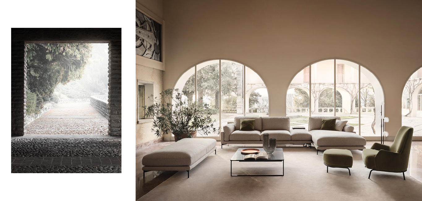The Cadorna sofa was created to be comfortable and lightweight at the same time. Equipped with unique comfort thanks to the enveloping down cushioning. Cadorma is characterized by shaped legs that determine its distinctive feature.