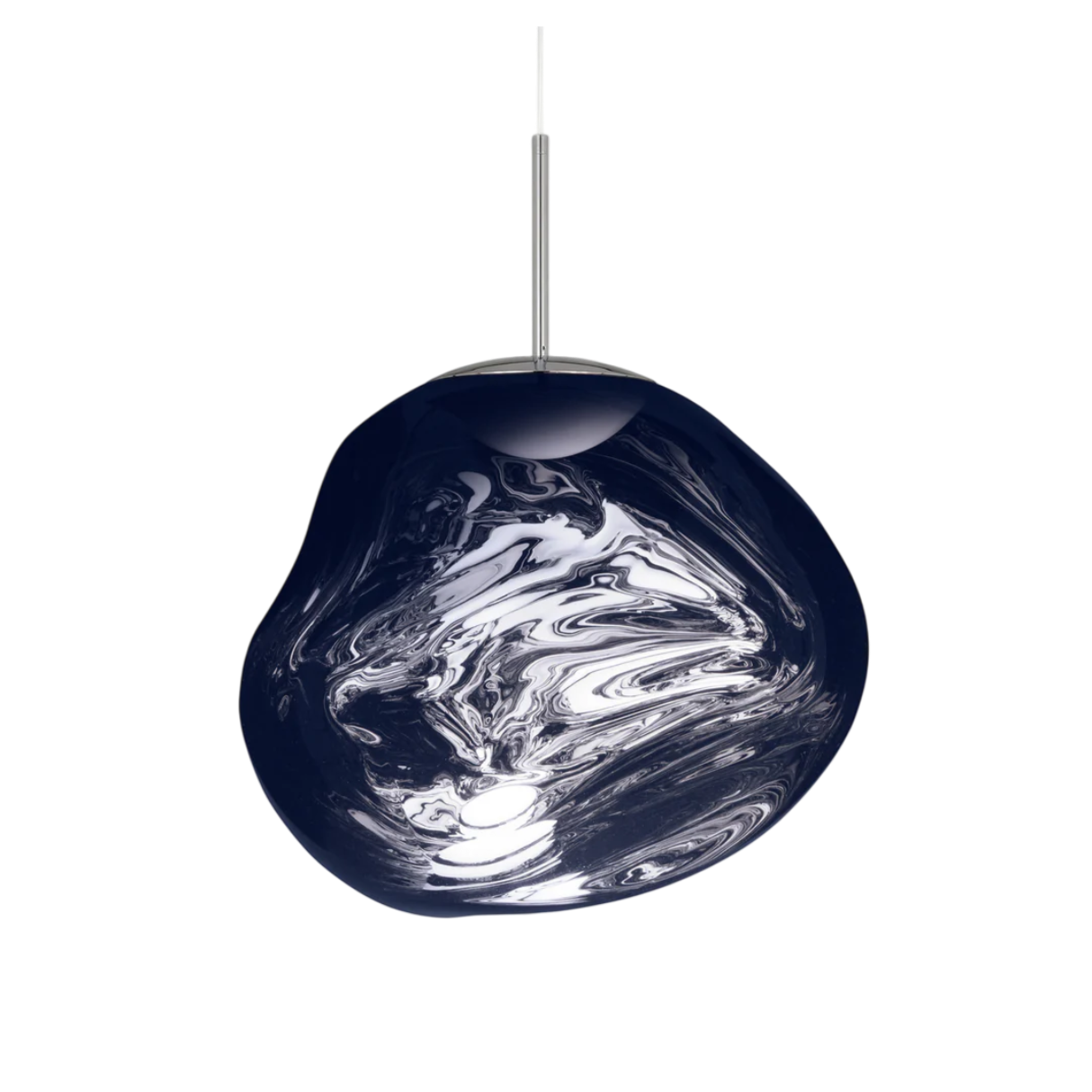 Melt is a beautifully distorted pendant in a modern Smoke finish and matching ceiling rose. Featuring our intergrated LED module, this ceiling light creates a mesmerizing melting hot-blown glass effect when on and a mirror-finish effect when off. Made in Germany using a high tech manufacturing technique to achieve the perfect melted orb.