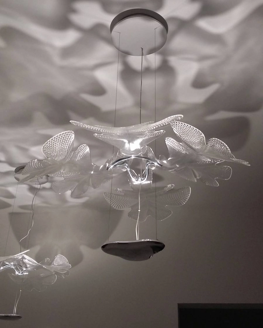 The Chlorophilia Suspension by Artemide looks stunning with gentle curves designing its distinct framework. The lampshade is made using cast aluminum and a standard finish wraps it in an elegant manner. The LED bulbs provided in this light fixture emit soft light and the central suspended COB body works as the heatsink so that it can release indirect light through its leaf-shaped surfaces. The Phytomorphic elements of this light fixture work as an optical lens due to the clear finish so that a radiant pattern is created on the ceiling. It is offered in one-tier, two-tier and custom size options.