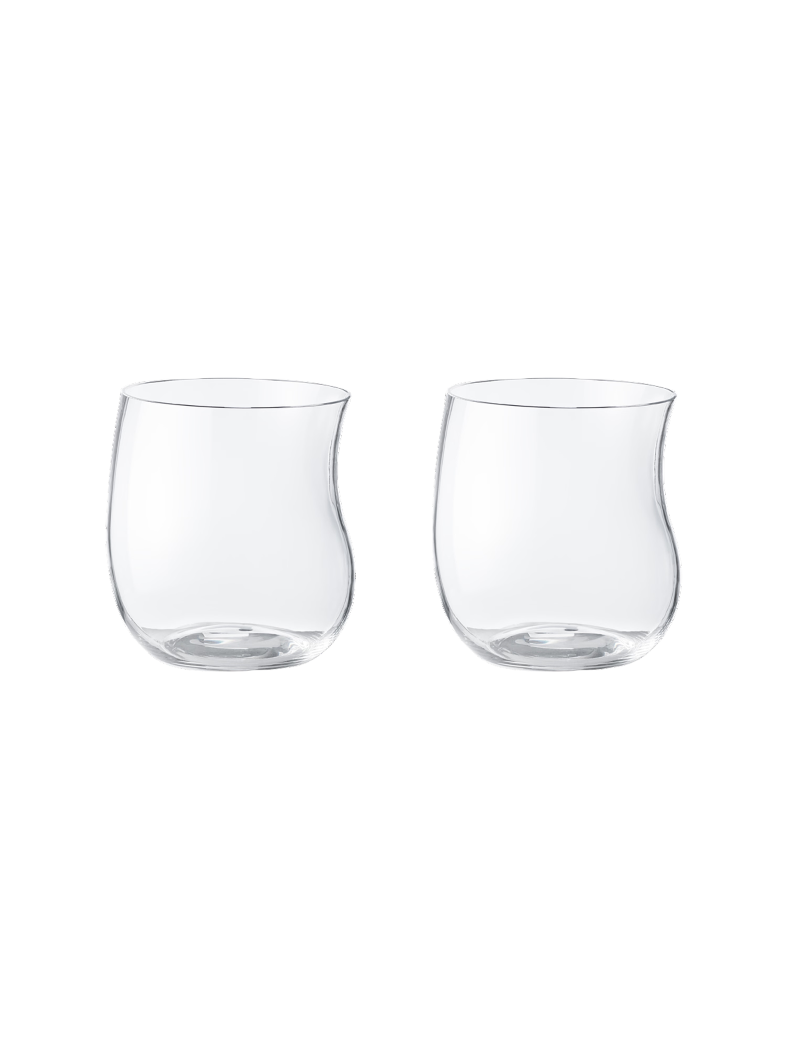 Bring a little Scandinavian style to your dinner table with this set of two unusual and attractive glass tumblers. With an organic shape and an ergonomic feel to them, they are perfect for water or fruit juice and add an unexpected, contemporary touch to mealtimes.