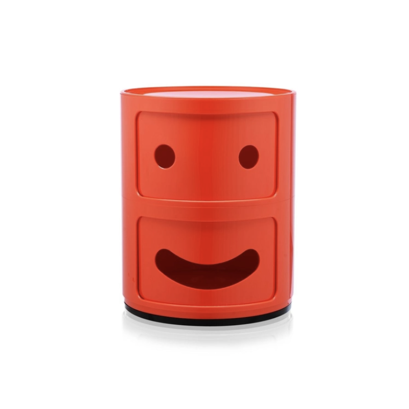 Fabio Novembre re-interprets the icon created by Anna Castelli Ferrieri: Componibili’s classic round hole has been reinterpreted into a winking eye, a nod to the emojis of today. The timeless classic acquires a playful new interpretation that fits perfectly into children’s spaces. This is a cylindrical Componibile of 32 cm in diameter, with a fixed, 2-level structure.