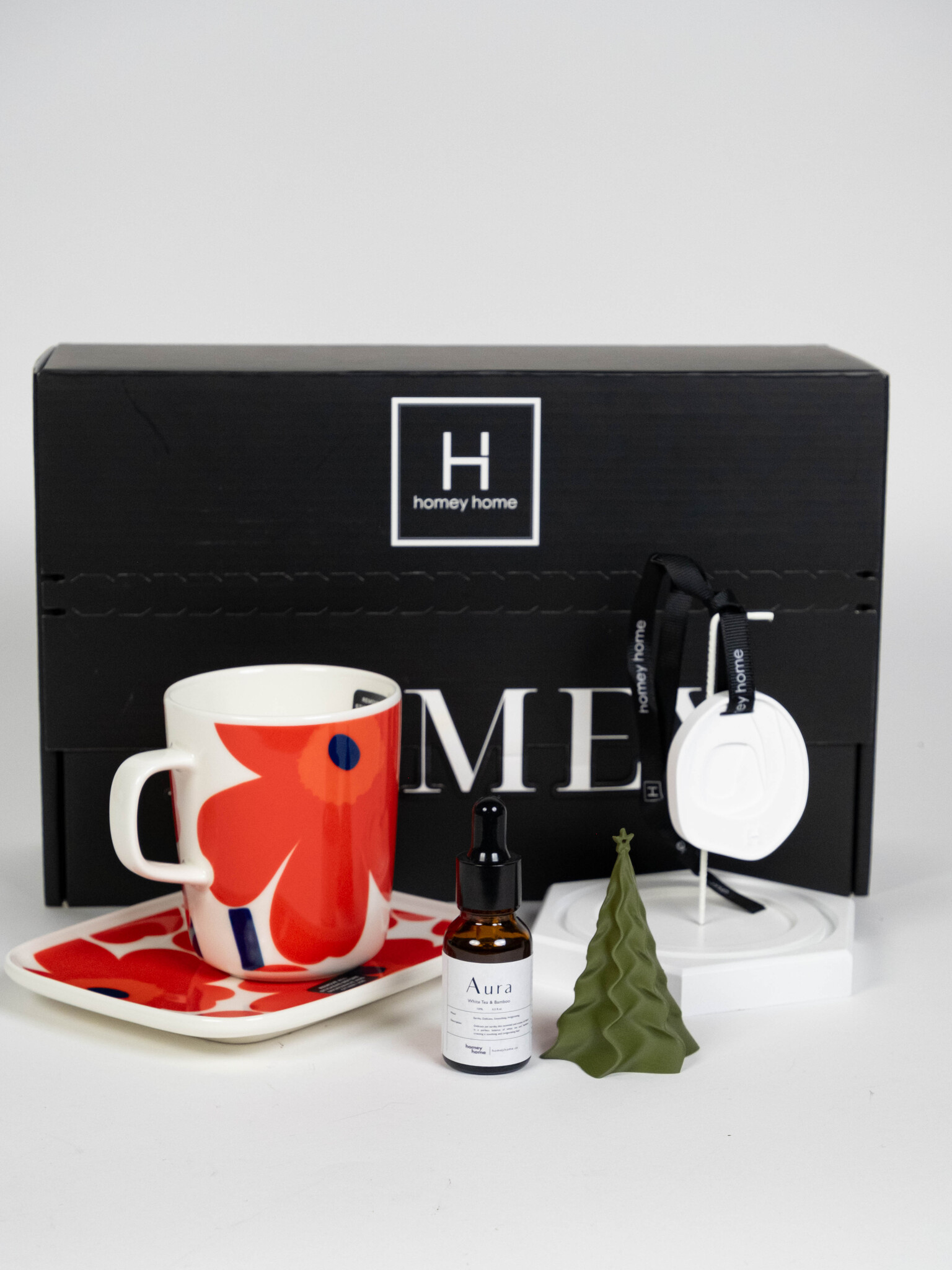 Bring festive cheer and cozy style to your home with the 2025 XMAS HOMEY BOX. This curated holiday set features a Marimekko Red 2.5dl Mug & Plate, a soothing Aura Scent Set, and an exclusive Xmas Ornament — beautifully packaged and ready for gifting.