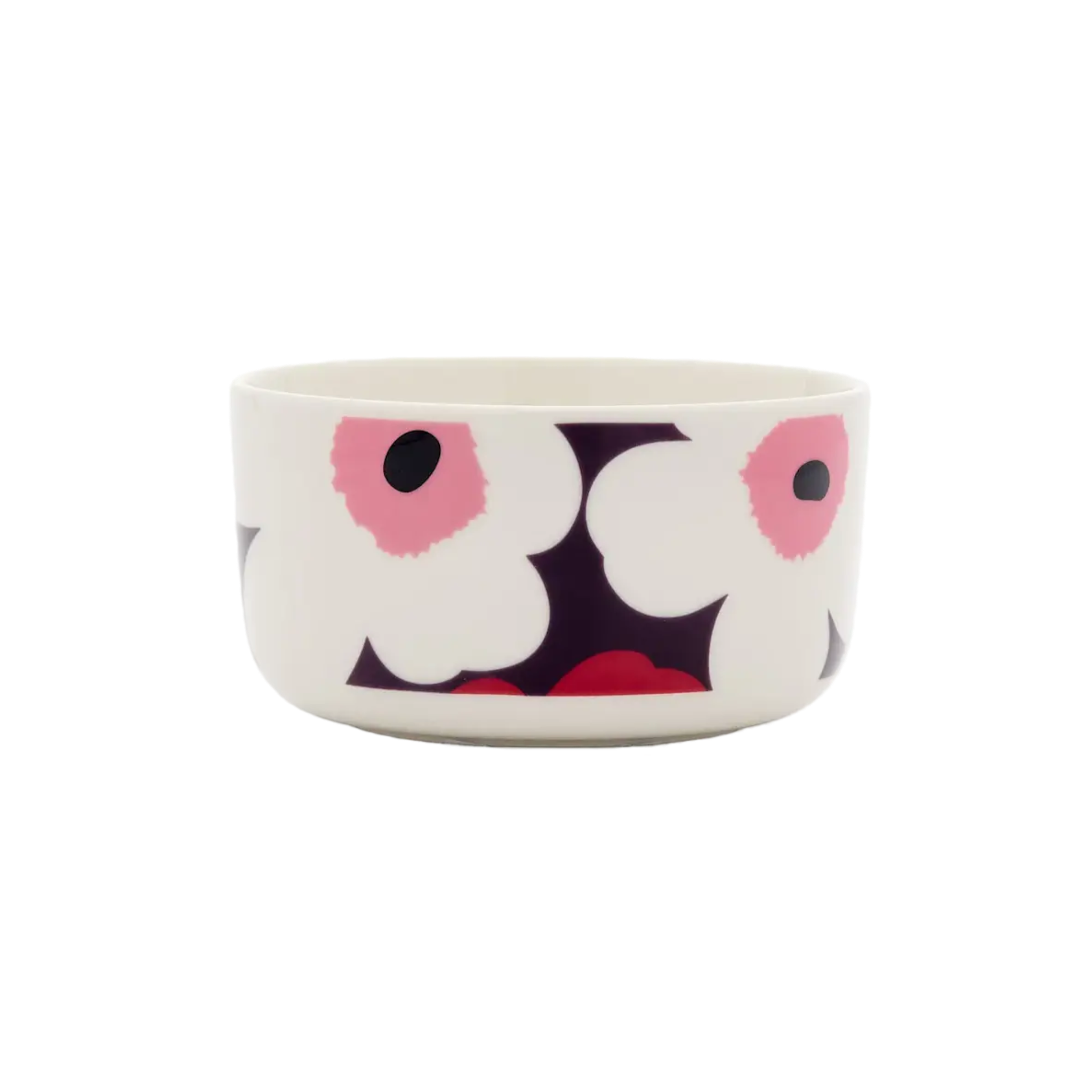 The Oiva bowl with Unikko pattern is made of white stoneware that is dishwasher, oven, microwave and freezer proof.