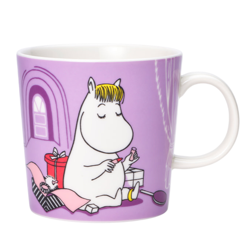 Snorkmaiden is sweet and sensitive, sometimes a little vain and flirtatious snork who enjoys being the centre of attention. In the backstory of the lilac Snorkmaiden Moomin mug from the Moomin Classics Collection, she has travelled to Riviera with the Moomins, where they try to blend in with the high society's luxurious ways.