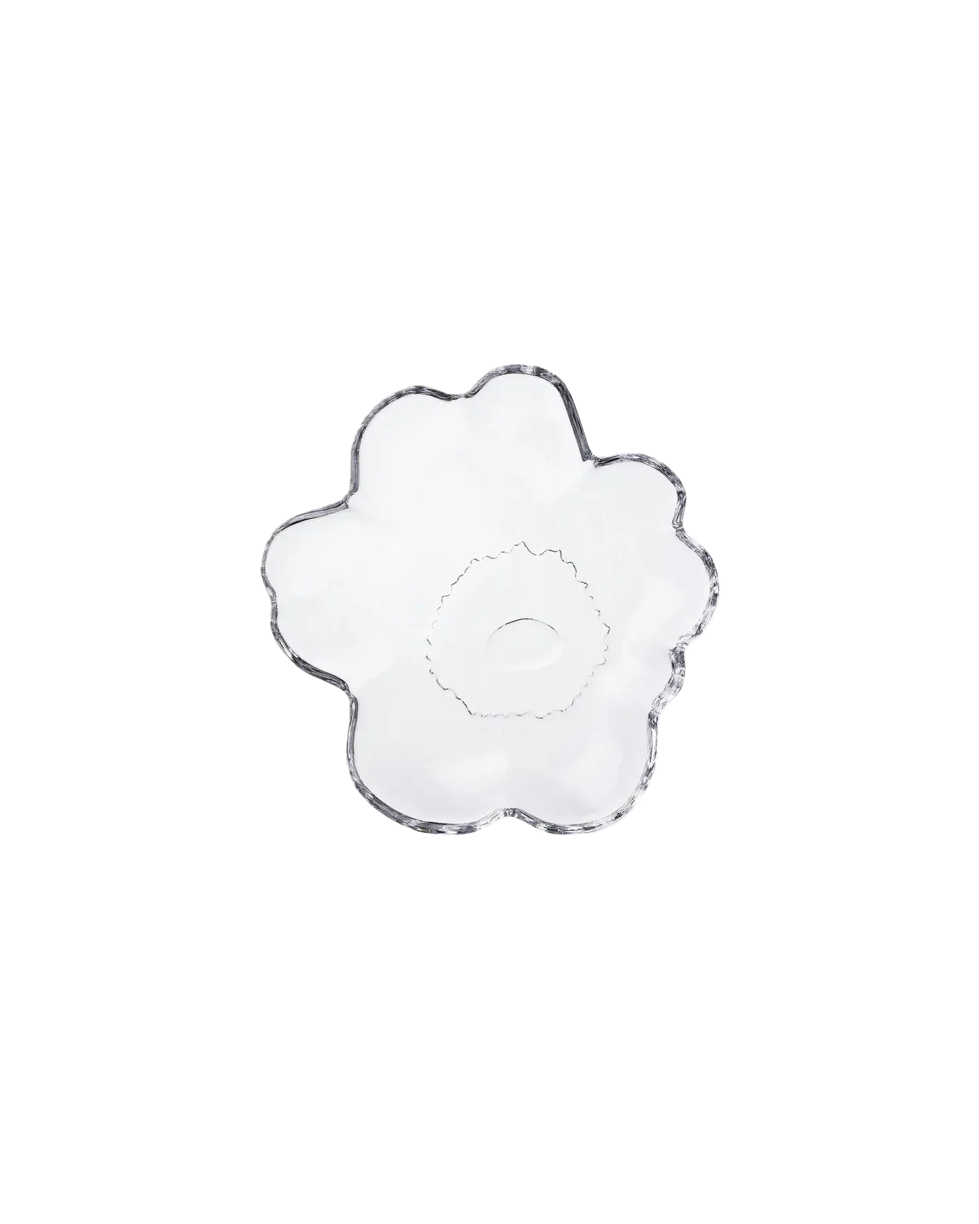 This small glass plate is made in the shape of the Unikko flower. We recommend washing the plate by hand.