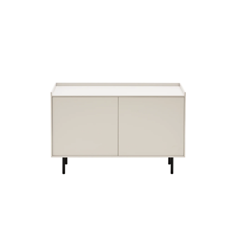 Discover our extraordinary family of sideboards, perfect for adding a touch of style to your home. Available in three different sizes, these sideboards feature interior glass shelves to offer organization and lightness. The metal base gives strength and linearity, while the tops and doors are covered in a delicate matte lacquer that lends a touch of sophistication. The tray-like textured top adds a hint of originality to the sideboard, which can be used in the center of the room thanks to the attention to detail also present in the back. Suitable for any environment and use thanks to their versatility.