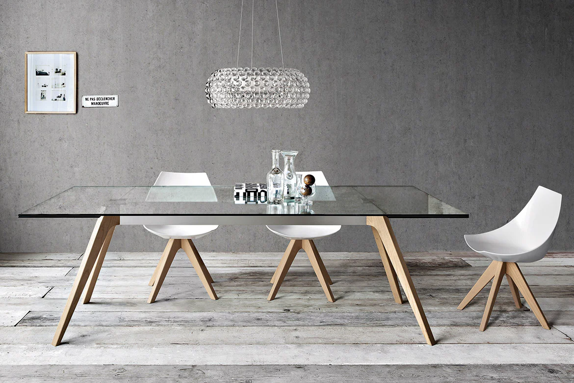 Beauty, stability and elegance mingle in a mix of equilibria and materials from which Delta is born. The gently tapered base makes the table harmonious and light, while fulfilling a static function for a structure with ultimate stability and sturdiness. The table top perfectly exploits the table base surface. Overall the finished table looks light and unconfined, creating a sensation of openness and excellent use of space. Delta was designed to fit in with the look and function of a living room, kitchen or even a study.
