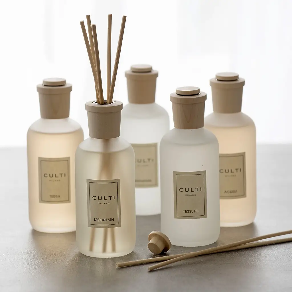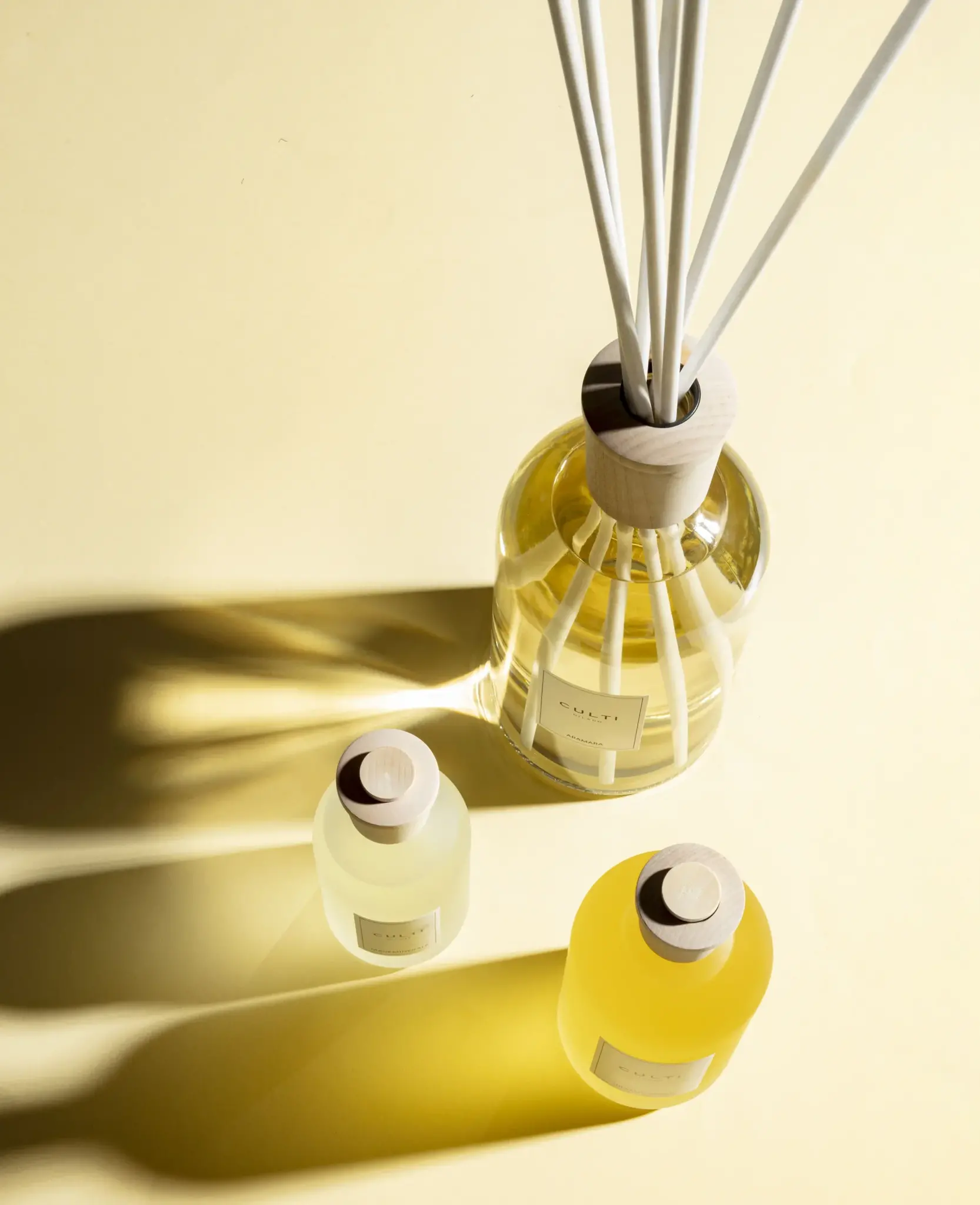 A unique fragrance, created in Como as a tribute to the most precious and natural fibres. Its pervading fragrance is __oven_ from bergamot, cassis flowers and cotton leaves, leading to a heart of jasmine and closing with a clean background of white musk.
