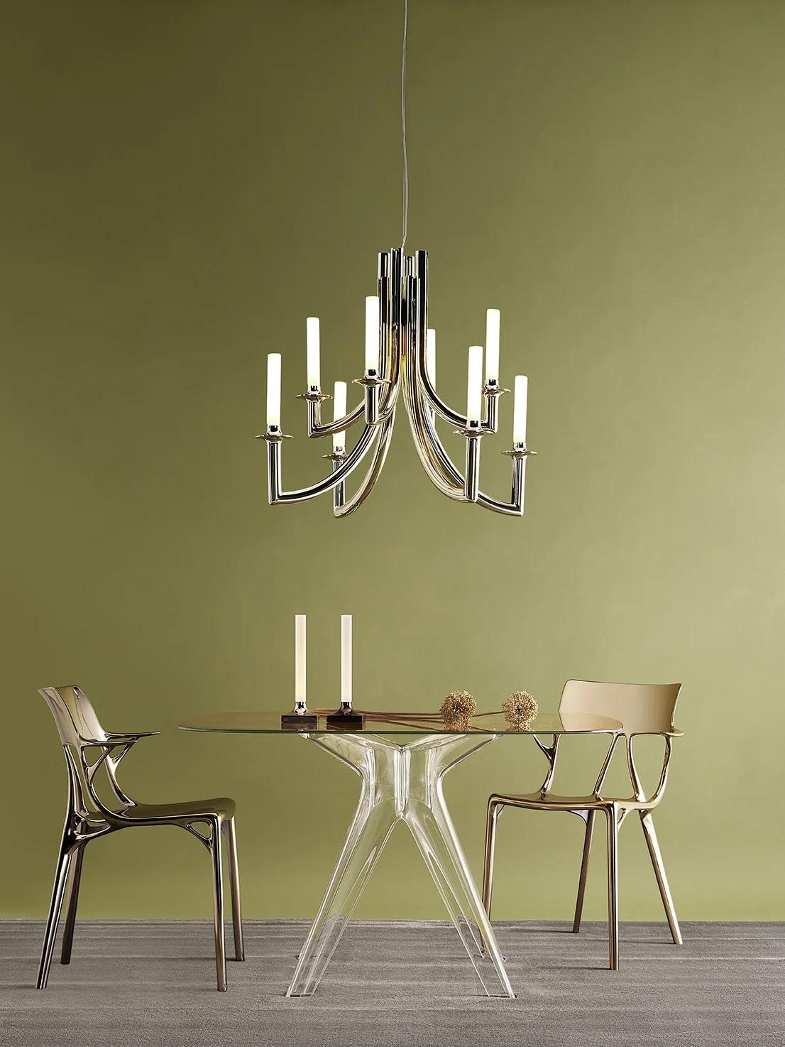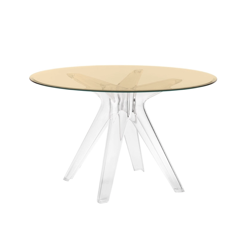 The Sir Gio table is characterised by a central leg created using a high-tech mould: the moulded plastic material conveys high performance and stability to support the glass top. The table offers the chance to combine different coloured bases and tops, for a wide range of different solutions.