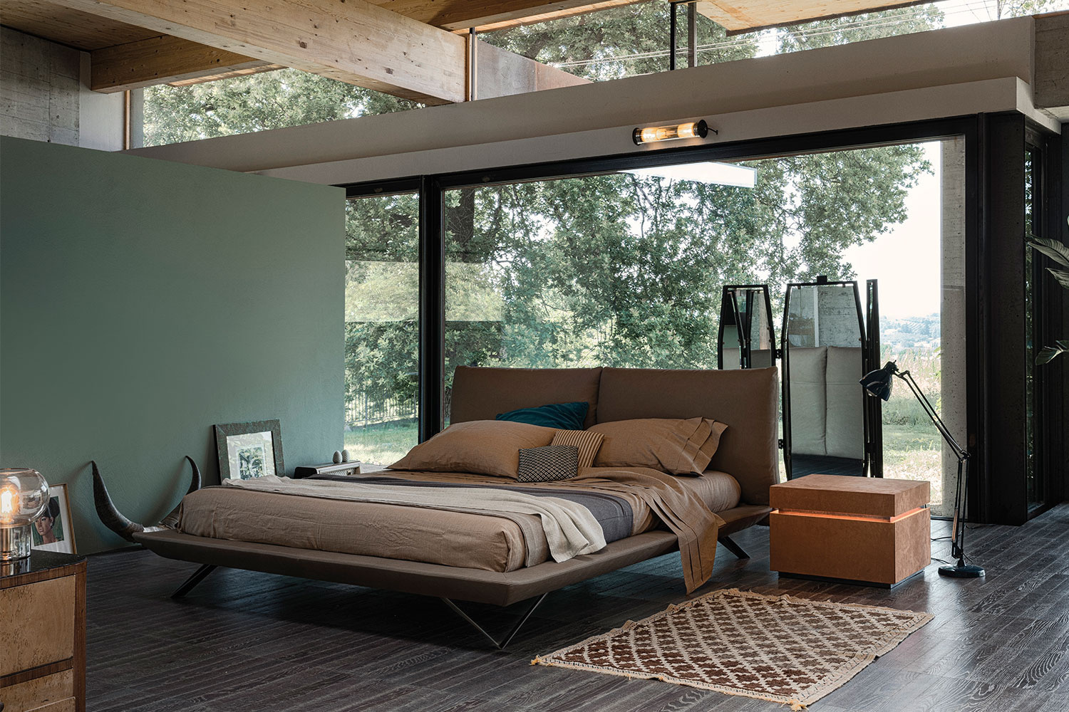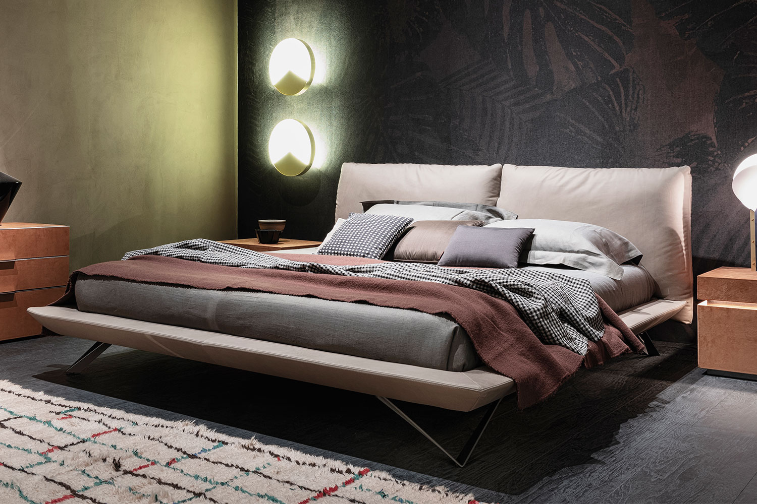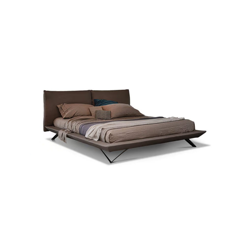 Upgrade your modern bedroom's style with the gorgeous Eden bed by Cierre. The eye-catching structure provides a great night's sleep with its plush pillow-like portions of the headboard. With a floating frame, there's plenty of room underneath to store belongings, and the sturdy, angled legs add a playful use of geometry. Intricate stitching along the edges highlights its fashionable structure and shows the manufacturer's incredible attention to detail. Manufactured in Italy with unmistakable quality, the Eden bed is available in king and queen sizes with Matte Anthracite metal legs. Upholstery options include an array of leathers and fabrics, and the stitching comes in matching, lighter, or darker colors.