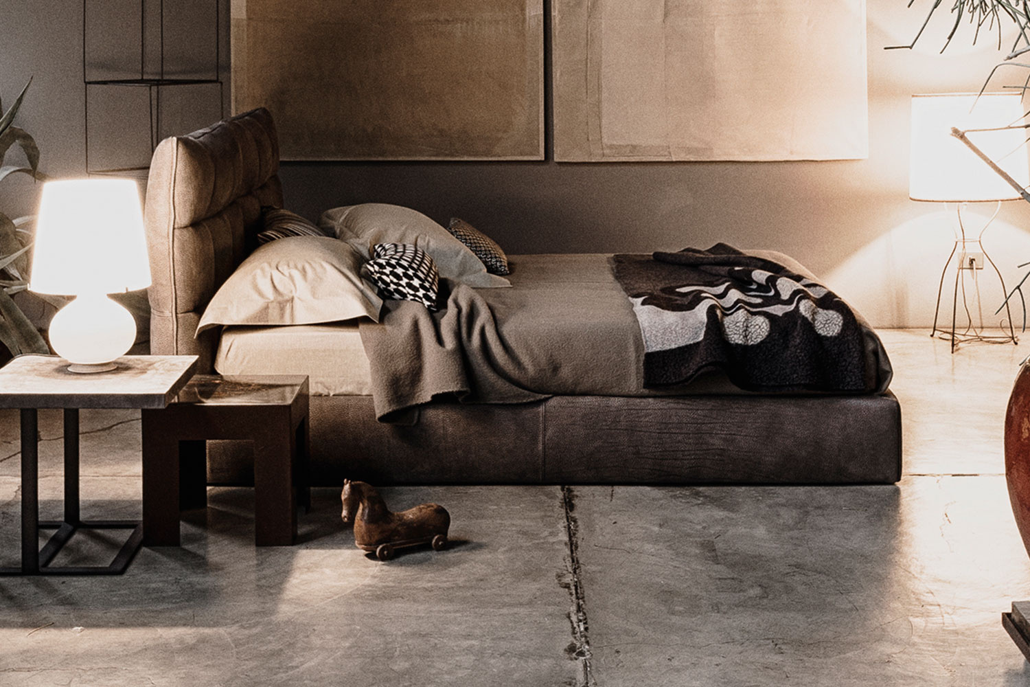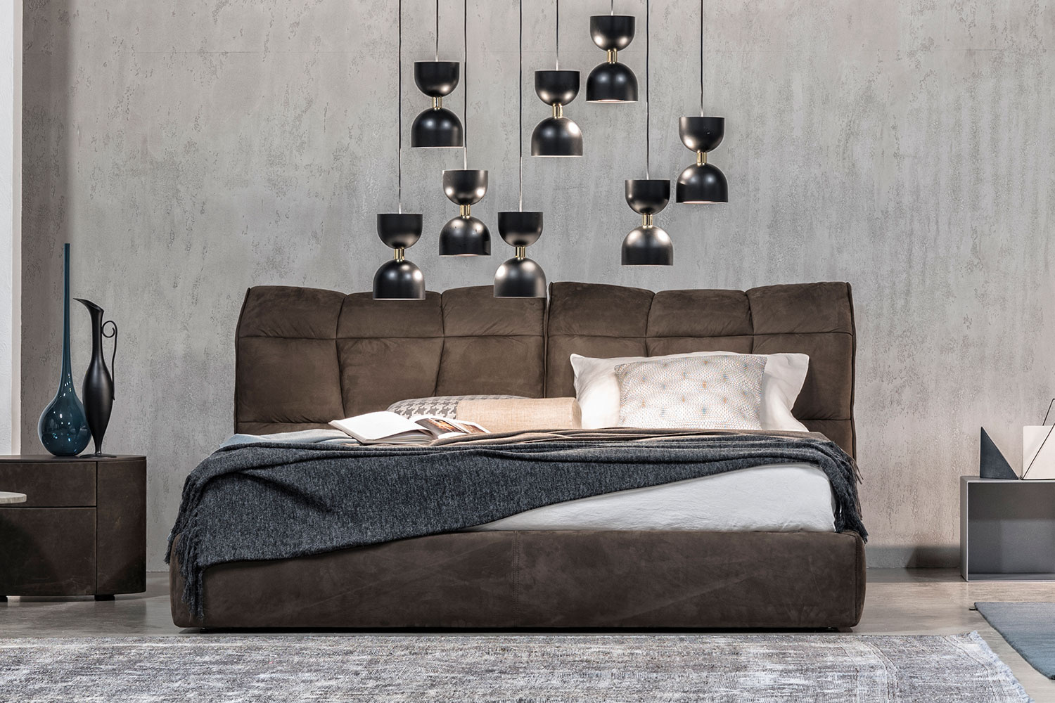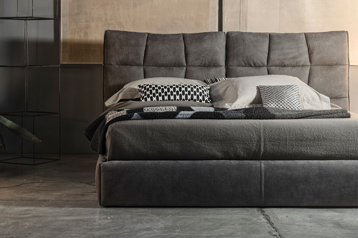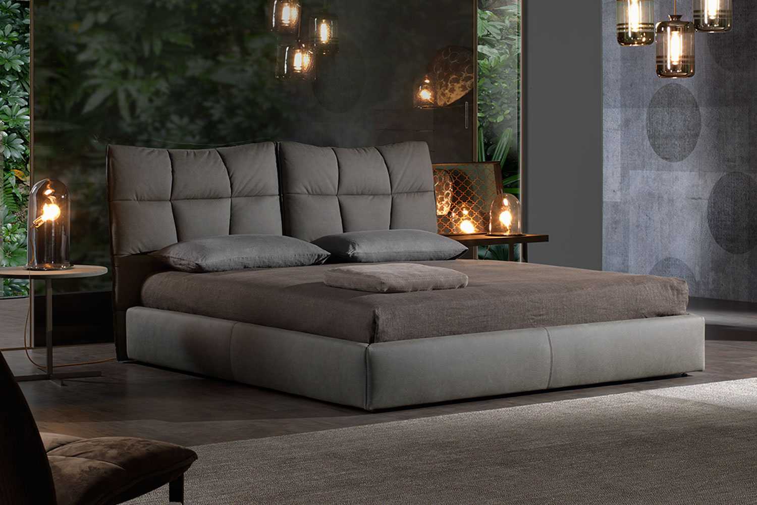 Have a great night's sleep in the captivating Eva II bed by Cierre. The upholstered headrest features textured stitching that creates a checkered pattern for a geometrically inspired touch. In addition to being stylish, the headboard is also adjustable to provide comfort and support when sitting up to read or watch TV. Thanks to the optional pull-up storage, it keeps items out of sight and organized for a convenient element. Manufactured in Italy with incredible attention to detail, the Eva II bed is available in king and queen sizes to accommodate individual needs and preferences. An array of leather and fabric upholstery options are available to create a one-of-a-kind product.