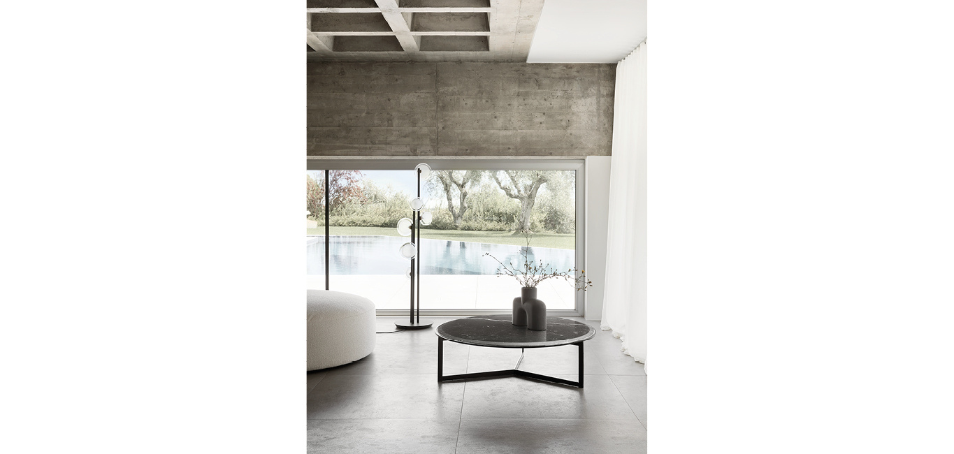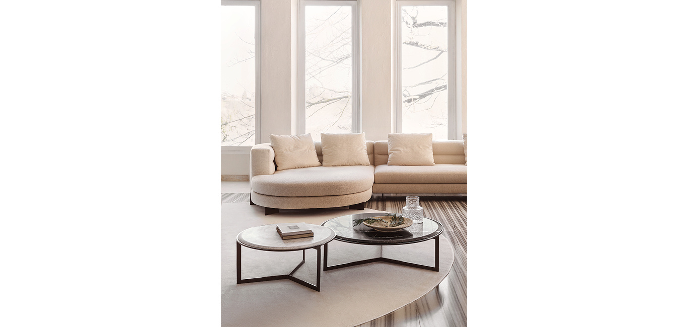Generous proportions and simple, clean lines characterise Grancircolo coffee table. Top available in different marbles.