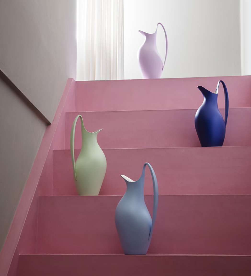Georg Jensen's Koppel Pitcher is given a colourful new life in the Blue Satin edition of the iconic design. Defined by a smooth matte finish, the pitcher's elegant new hue is borrowed from designer Henning Koppel's original sketches, which he would brush with a palette of his favourite colours. Designed to stand on its own or be paired with other editions of the pitcher, the piece respectfully pays homage to Koppel's original 1950s design.The item is not dishwasher safe