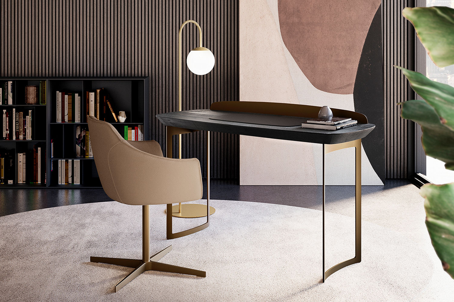 Icon Desk is the modern desk that takes a classic from the recent past and reinterprets it in a current and contemporary style, to tell new life stories. Designed by designer Ollen Pal, the Icon Desk is made with a base and top frame in painted metal, while the top is in veneered wood. The unique character of this furnishing accessory are the precious painted metal legs. With a refined and elegant style, this modern desk can also be used as a dressing table thanks to the comfortable extra-clear bevelled mirror. An elegant leather pad is available on request.
