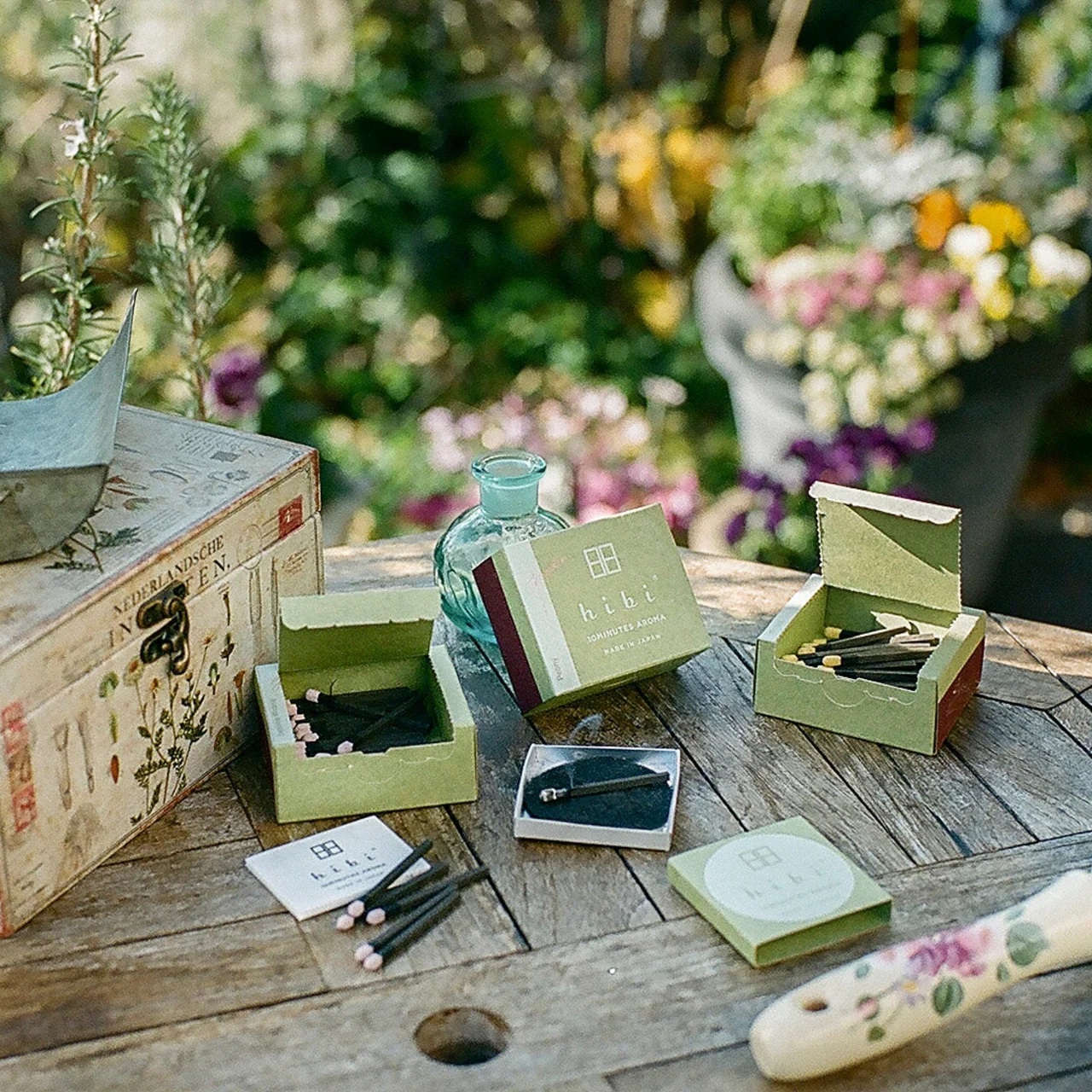 The hibi Garden incense collection offers three sweet floral fragrances. Regular 8-stick and large 30-stick packs are available.