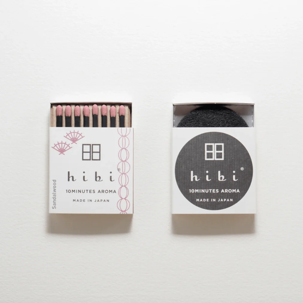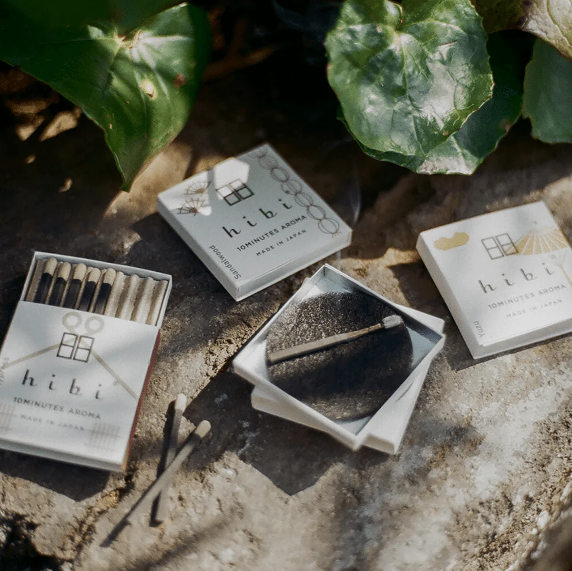 The hibi Japanese fragrance collection has three traditional Japanese incense fragrances. Regular 8-stick and large 30-stick incense match packs are available.