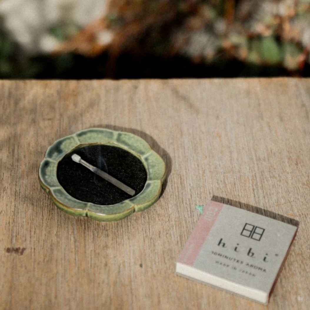 In collaboration with local artisans, Hibi introduces the green Oribe and yellow Kiseto incense trays, celebrated for their simple, rustic charm. Lighting a Hibi 10-minute Aroma on the Seto tray allows one to experience a harmonious blend of three traditional Japanese arts: incense making, matchstick crafting, and pottery.