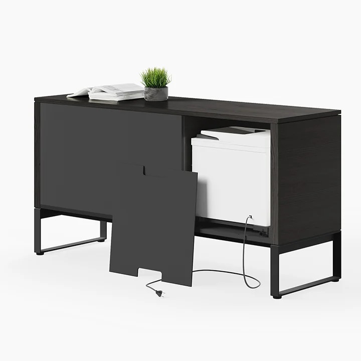 Combining beautiful design with innovative function, this cabinet provides secure storage for supplies and files and a unique pull-out compartment for a printer or all-in-one.