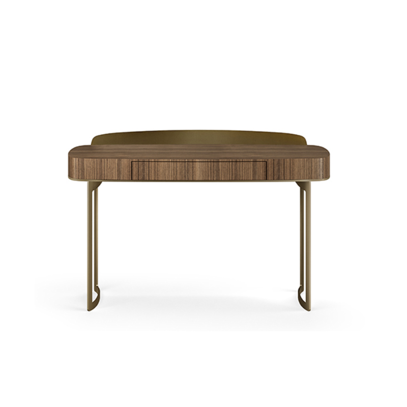 Lyra Desk is the elegant desk with clean and essential lines perfect for the home office corner. Designed by Ollen Pal, Lyra Desk is made with a central drawer, base and top frame in painted metal, while the top is in veneered wood with a lacquered profile. Two painted metal legs support the wooden structure with sinuous curves, while the unique touch of the elegant piece of furniture is given by a precious painted metal frame that fits onto the top enhanced by a refined profile in contrasting lacquered wood. This elegant furnishing accessory can be used both as a desk and as a dressing table, thanks to the presence of the comfortable and refined extra-clear bevelled mirror: a piece of furniture with a classic style that will be able to decorate rooms with style and charm. An elegant leather pad is available on request. The Lyra Desk goes perfectly with the Max Deluxe wooden chair.