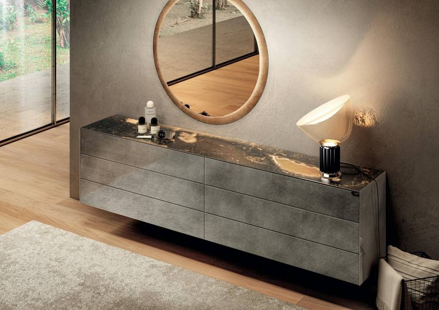 An elegant, continuous grain and pattern embellish the surfaces of the Materia modern dressers with wood, marble, metal or fabric printed onto glass using the revolutionary XGlass technology. Functional bedroom storage units, mounted on the wall or on metal supports in Titanio Steel or Peltro Steel, furnish any type of bedroom with style.Recent articles