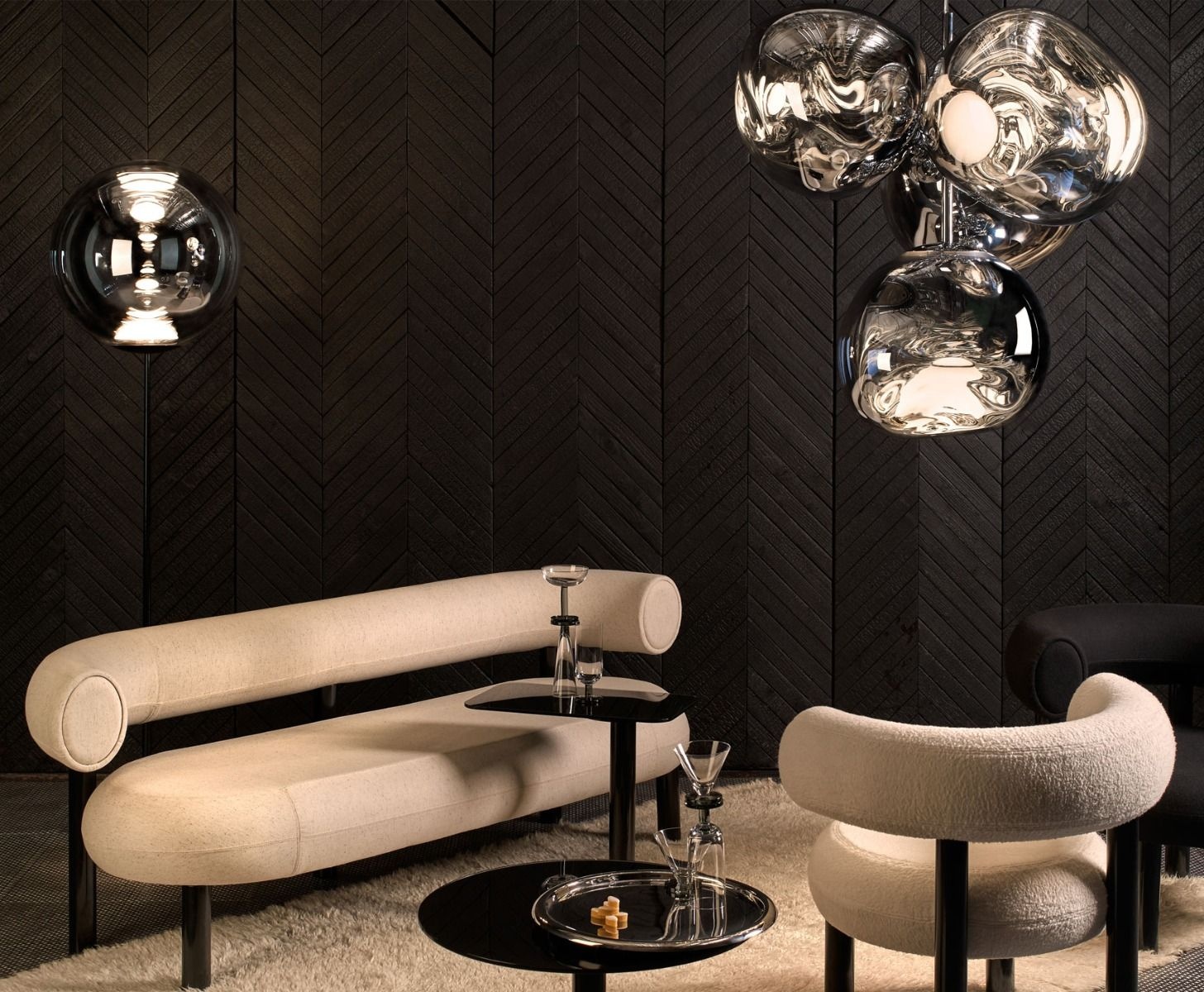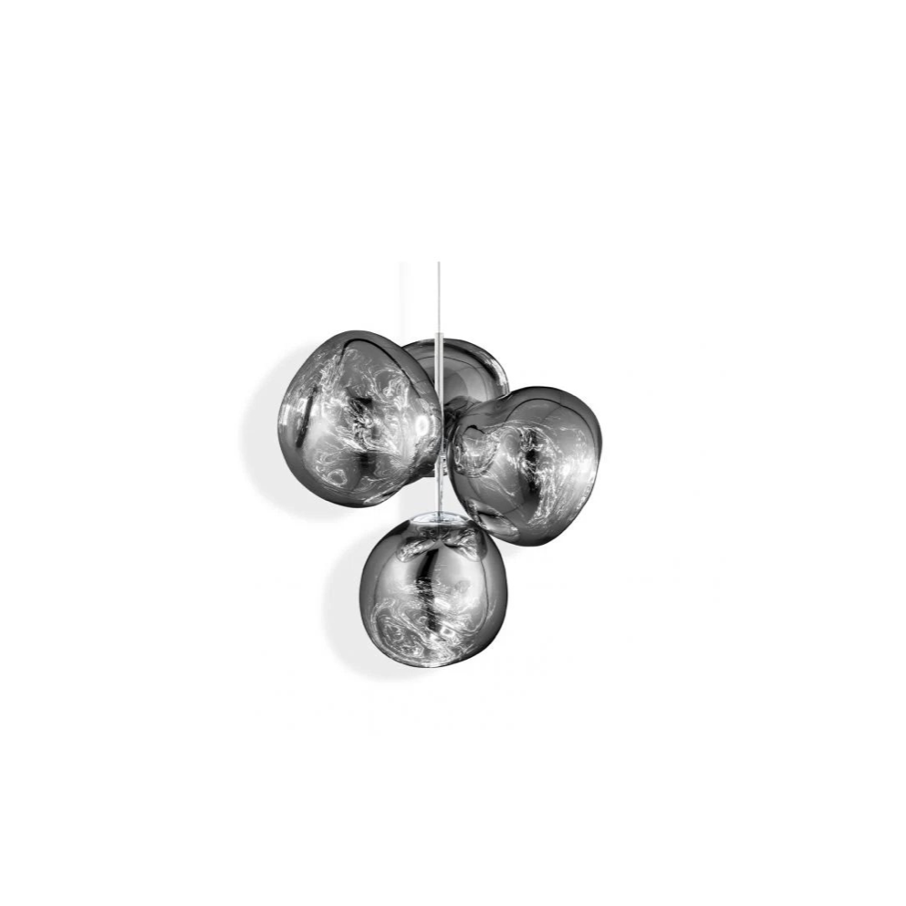 A swarm, huddle, herd, cluster or bunch; there are a thousand ways of configuring our lamps to produce an extraordinary lighting arrangement. The latest additions to the Melt family include the Melt Small Chandelier featuring four orbs protruding from steel tubes and measuring one metre high. Fitted with our new LED module, our Melt Chandeliers are our attempt to rethink the contemporary chandelier.