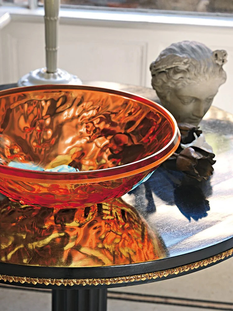 Moon is a large translucent cup, visible from the outside and from the inside, like reversible lunar caps. Whether used as a centrepiece or an ornament, Moon echoes the same fluctuating lines as the Dune trays.