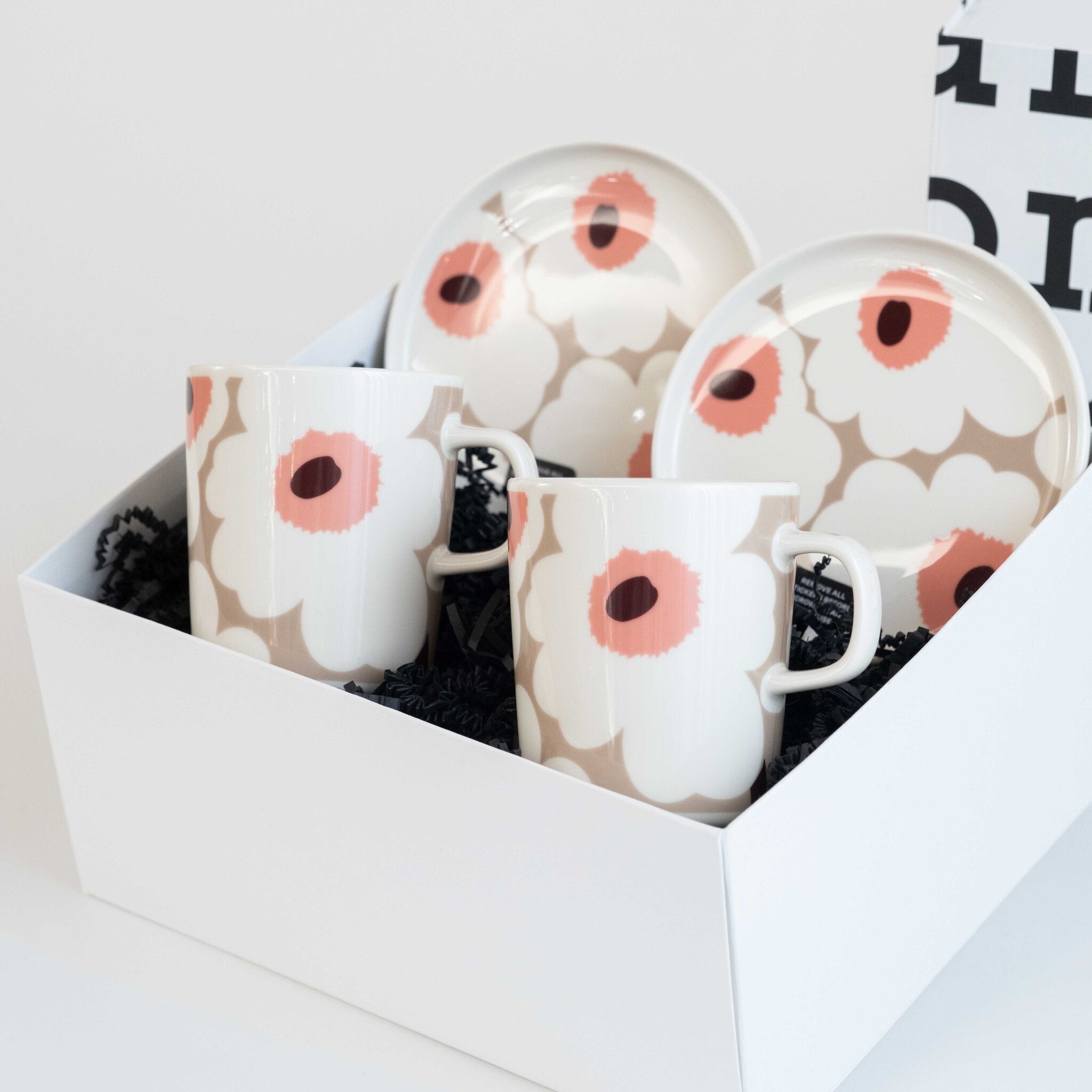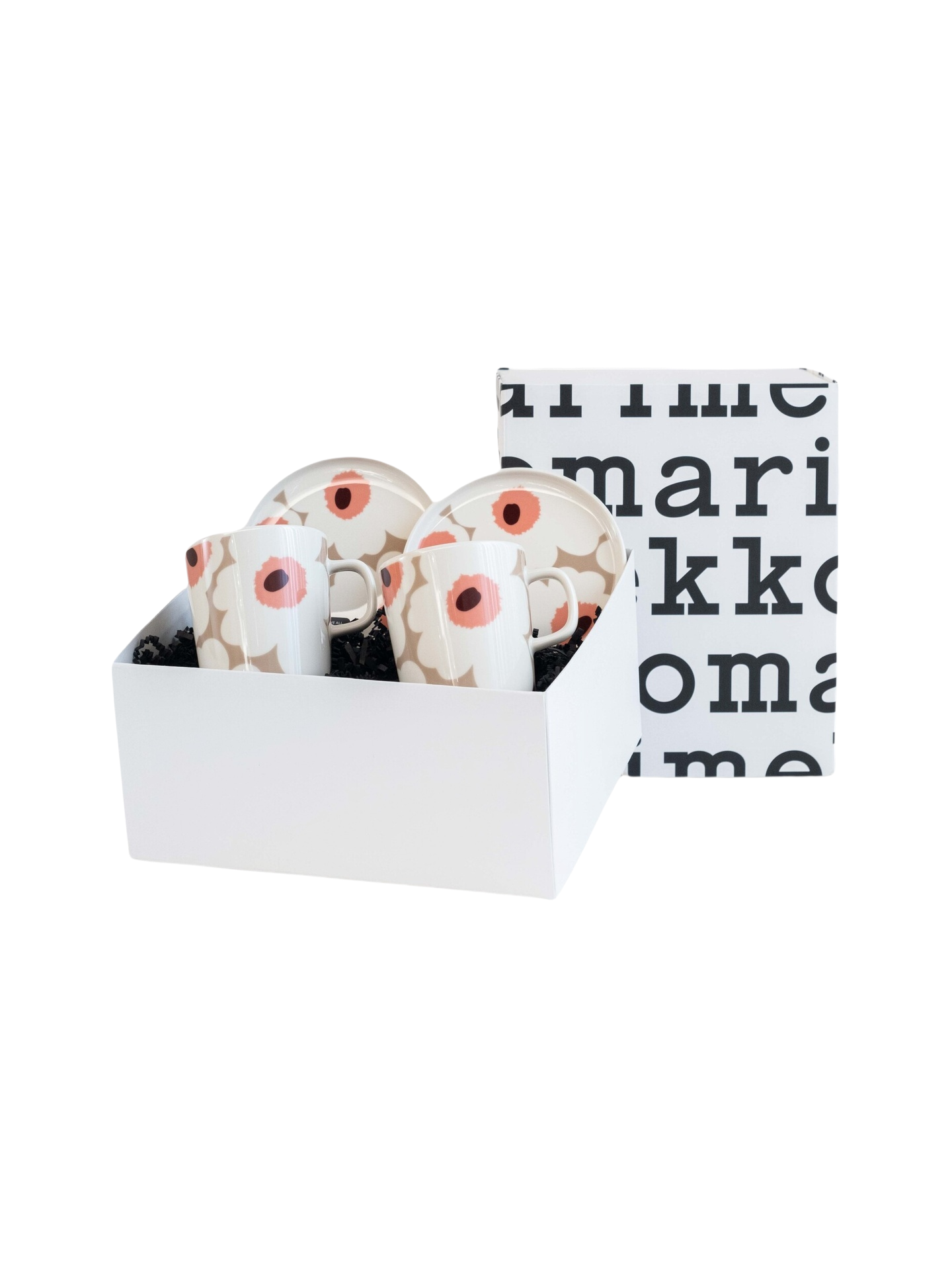 MUG & PLATE SET- UNIKKO MUG 2,5 DL PINK & BEIGE + 13.5CM ROUND PLATE