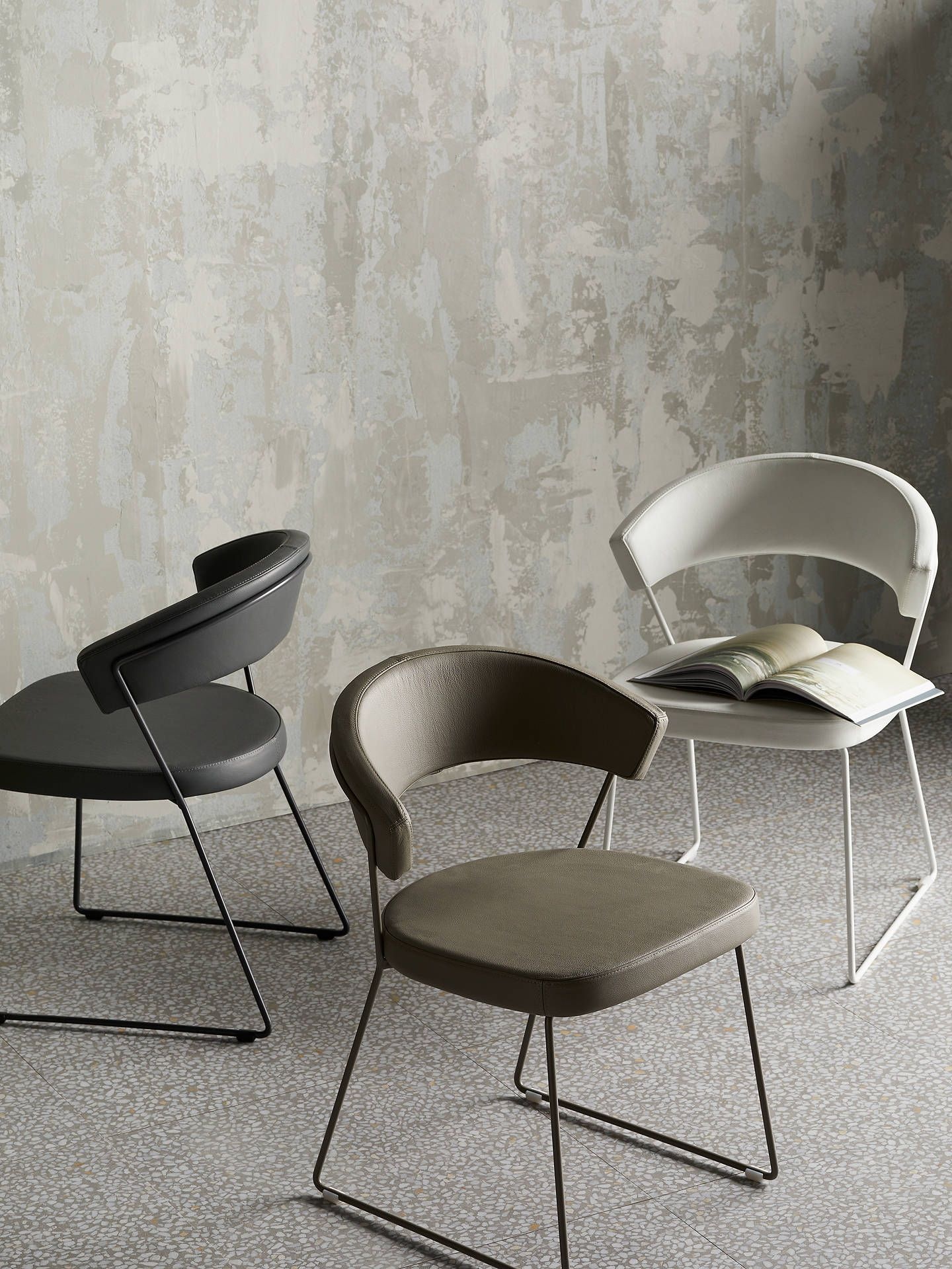 The NEW YORK stool has a metal frame with sled base and upholstered and covered seat/backrest. The wraparound backrest and the wide seat, which make the chair always very comfortable, are both upholstered. In addition, the stool is equipped with four runners in neutral colour shockproof plastic, positioned beneath the sled base. Chrome-plated footrest. An ergonomic designer stool, NEW YORK is ideal for completing the furnishing of the dining room. Choose it in the configuration you prefer.