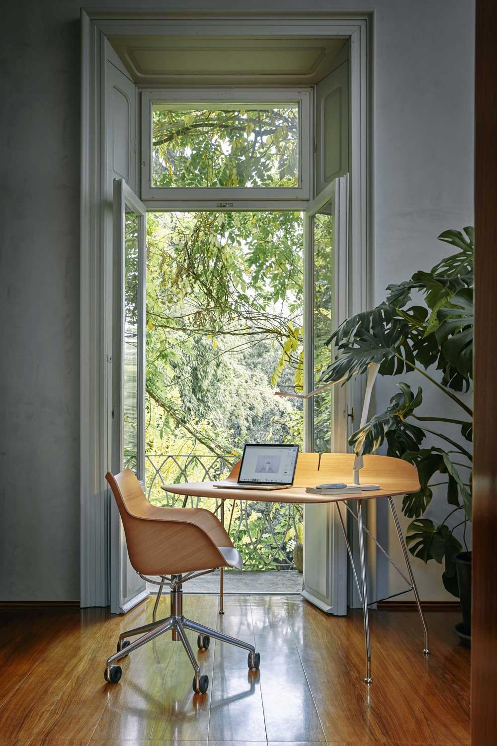 EARL OF WOOD is a simple new desk with a curved wooden surface, offering the perfect solution to the Office and Habitat worlds on account of its myriad different functions. The upper and lower edges of the desk are curved, ensuring maximum practicality.