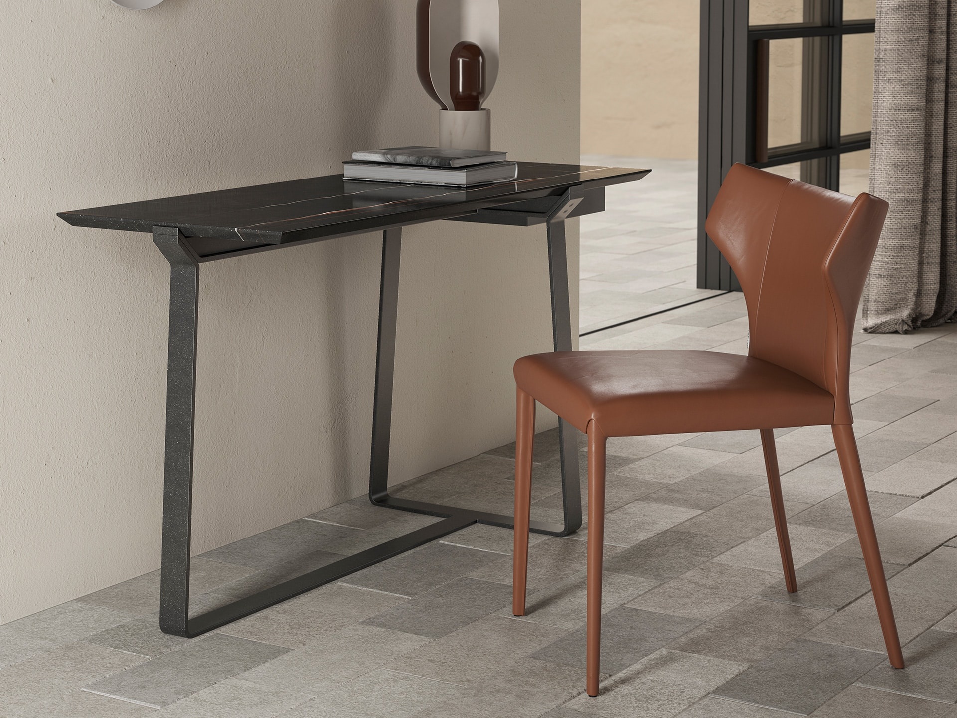 Omega, the last letter in the Greek alphabet and the last word in design. The refined design of Omega desk features the top in beautiful marble elegantly set on a metal frame that gives it a contemporary look. This project fits perfectly in both day and night areas, combining beauty and great functionality.