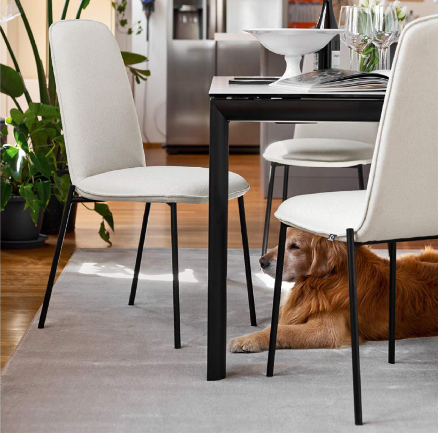 The Riley CB2157-N chair has a high seat, perfect for a more elegant dining room. The seat is soft and comfortable; the structure consists of 4 metal legs and together with the high backrest they favor home and contract use. Upholstery available in different colours.