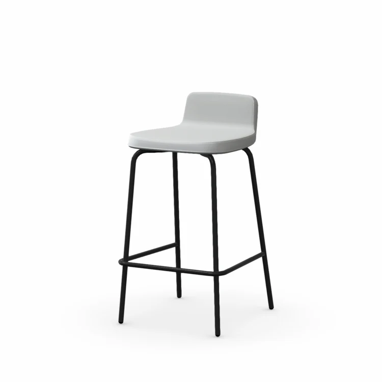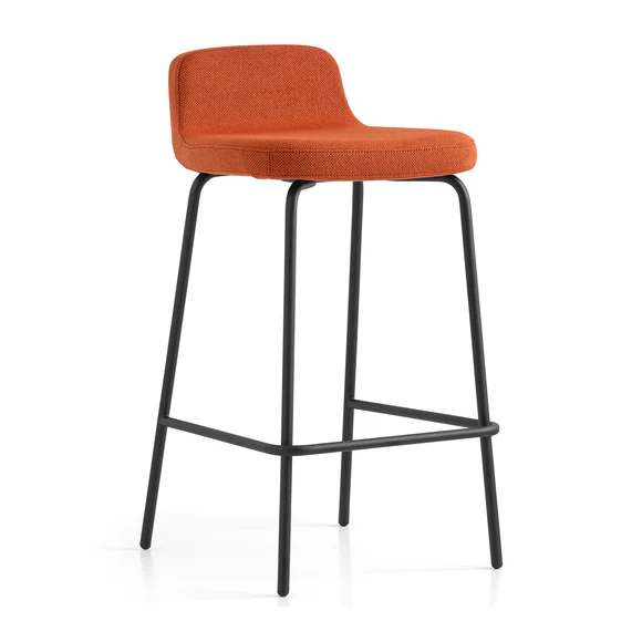 Riley stool with a metal-rod base. chair seats with various options for materials and finishes.