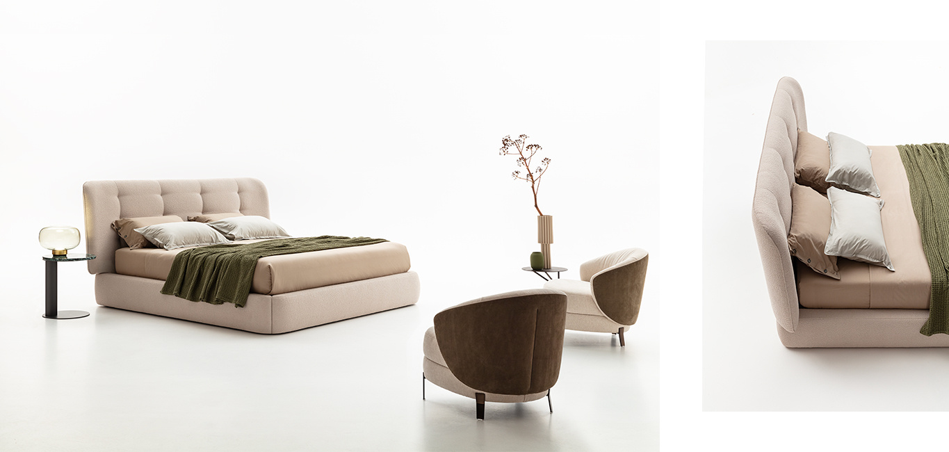 The bed Rubicon High is characterized by a high sense of softness and welcome due to its curved shapes. The back seems to wrap around the base creating an elegant shell ready to welcome.Recent articles