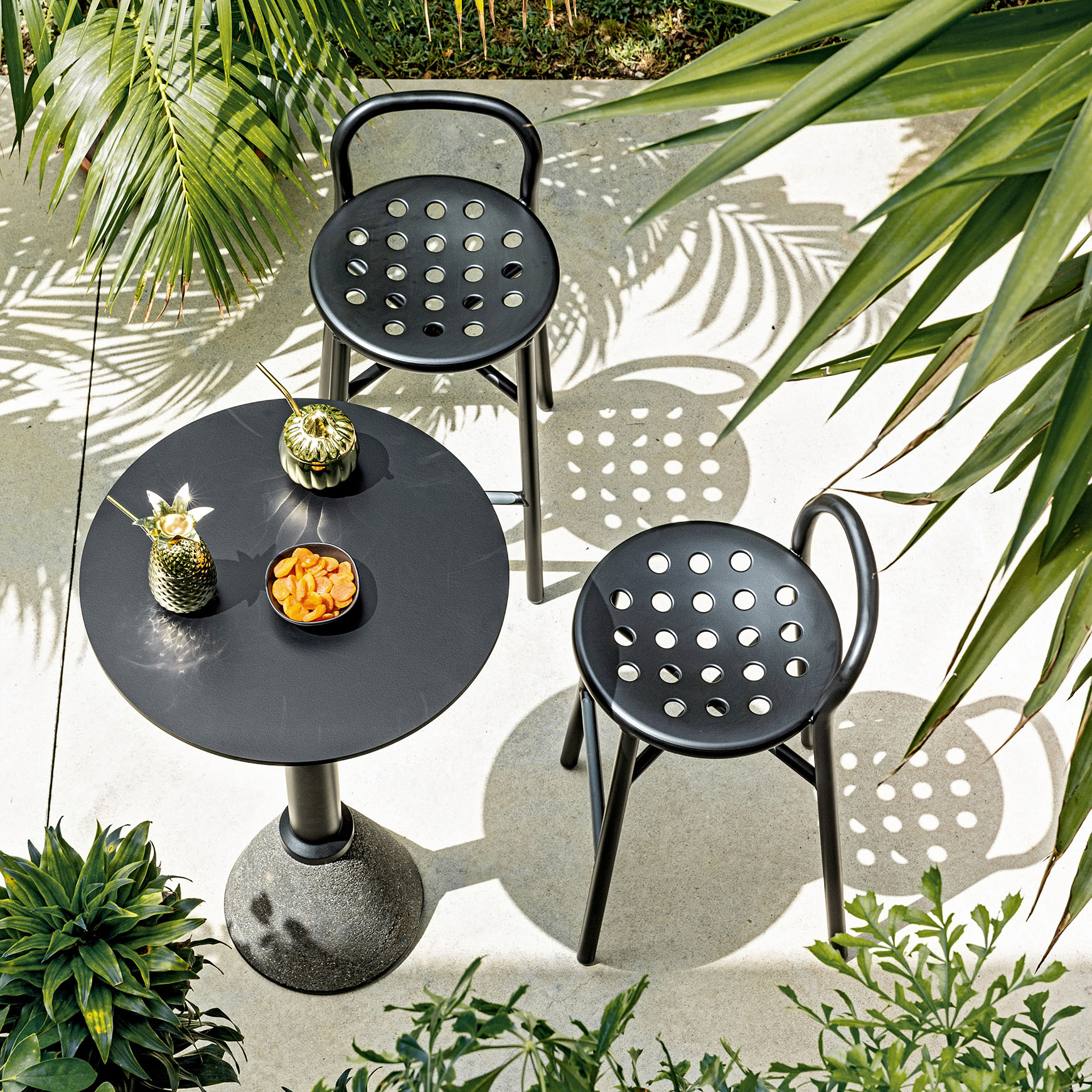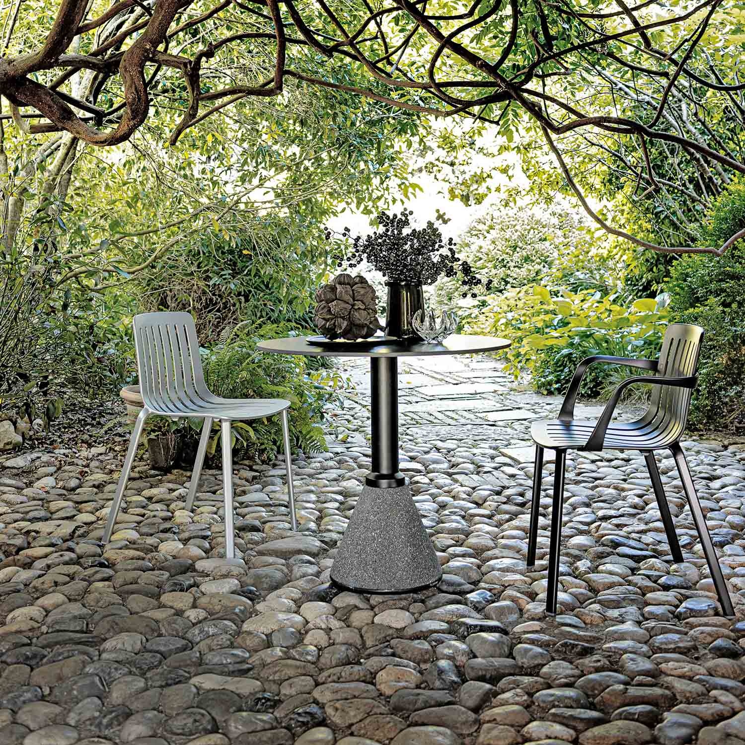 Table. Material: concrete base painted transparent clear or black. Frame in anodized or painted aluminum. Top in HPL. Versions for outdoor use available. Table available in different dimensions.