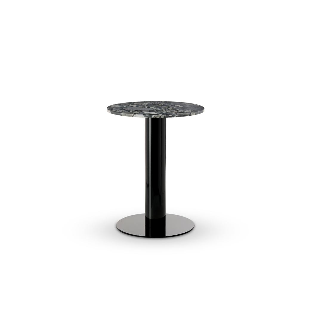 TUBE DINING TABLE BLACK BASE PEBBLE MARBLE