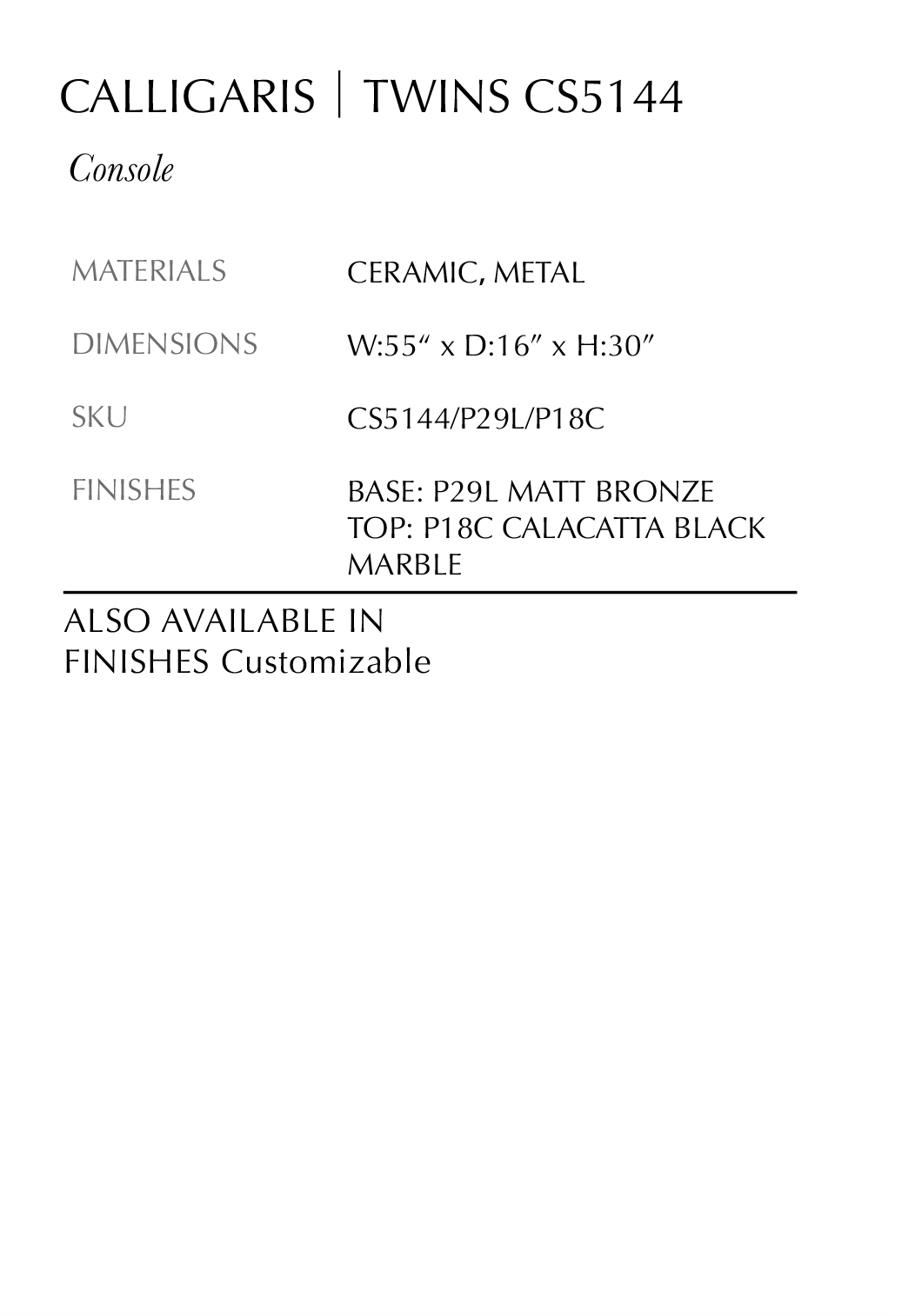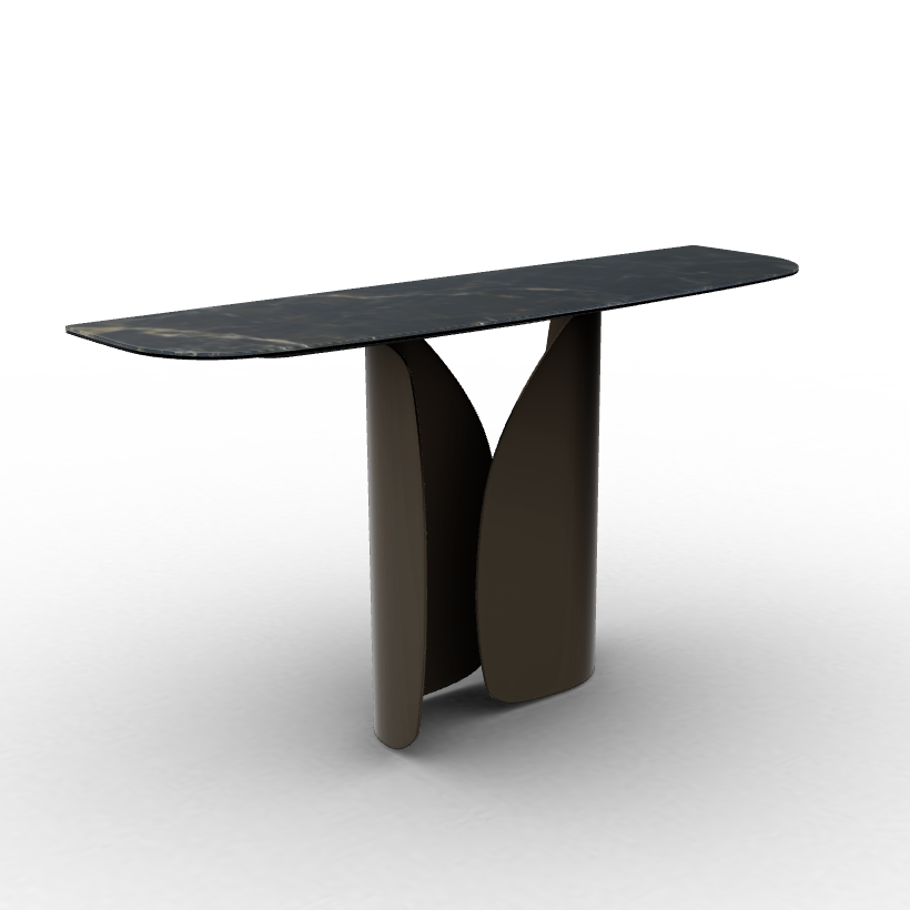 The Twins console, inspired by its namesake table, features gracefully curved metal elements that support a top with rounded corners. Available in a variety of finishes, this console can be customized to suit any style. Its compact dimensions make it an ideal choice for functional and transitional spaces, adding a touch of elegance and practicality.