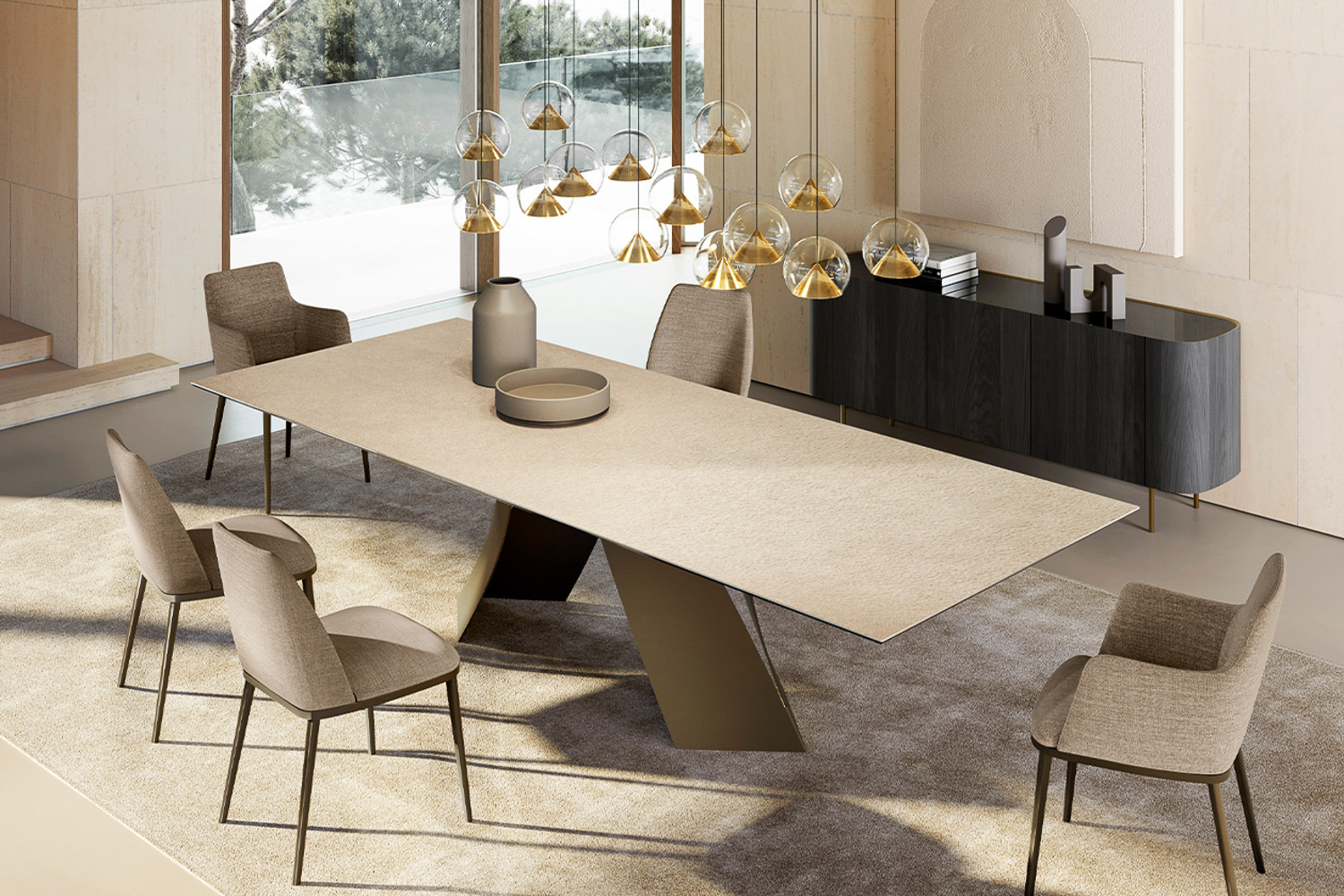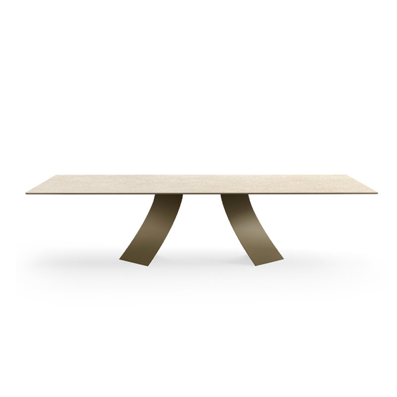 The Twist table is one of the modern furnishings that best suits contemporary taste, without being excessive. Its eclectic metal base is made up of two legs with delicate lines, but which at the same time form a solid and decisive structure where the excellent quality of the materials is enhanced. The Twist design table has the ability to transform based on the perspective from which you look at it, the movement of lights and shadows create a light-dark movement that makes it original and light. On its legs rests a refined 16 mm thick ceramic top composed of tempered glass covered with a ceramic sheet available in different colors and textures: opaque or glossy, smooth to the touch or with a more material appearance, each color allows to create refined combinations Twist, as well as in ceramic, is also available in the wooden table, glass table and marble table versions and is the perfect modern table to satisfy the different tastes that contemporary furnishings require.