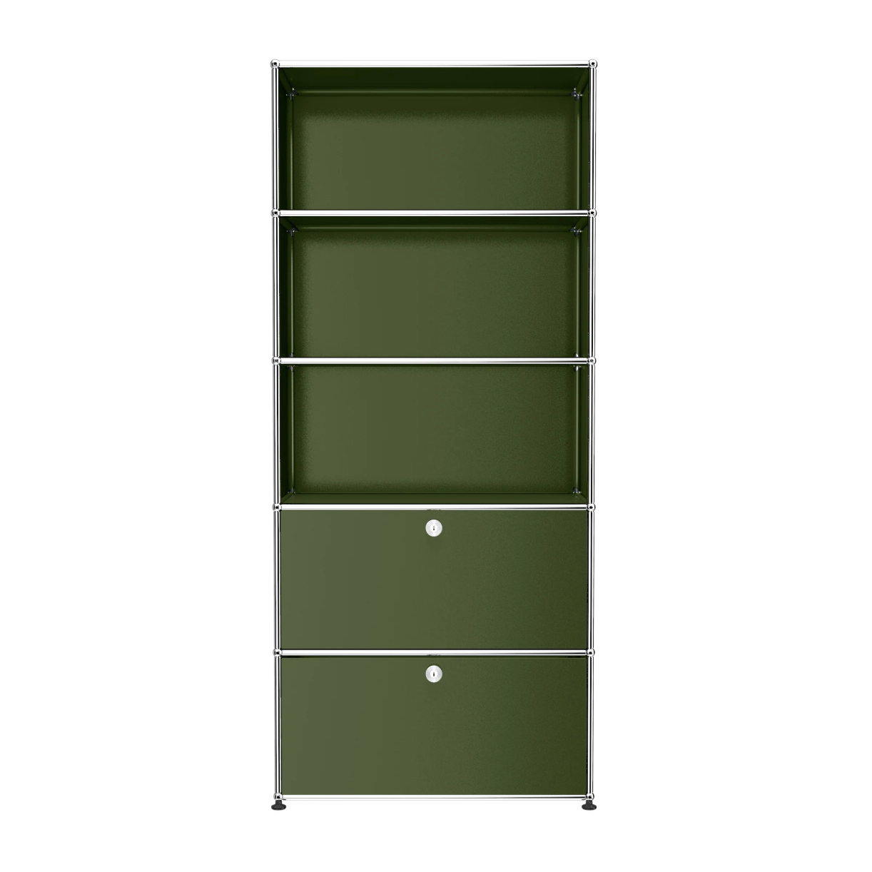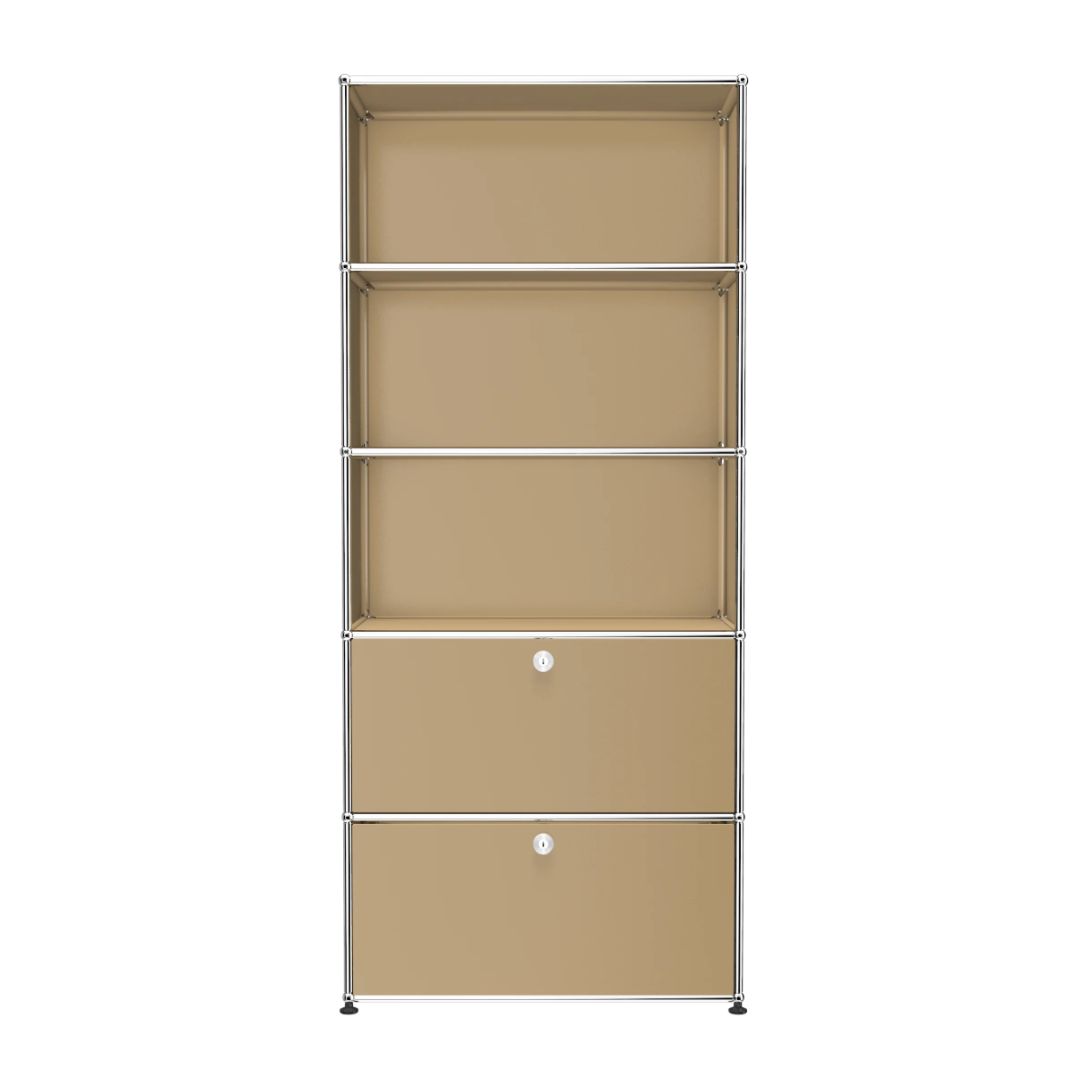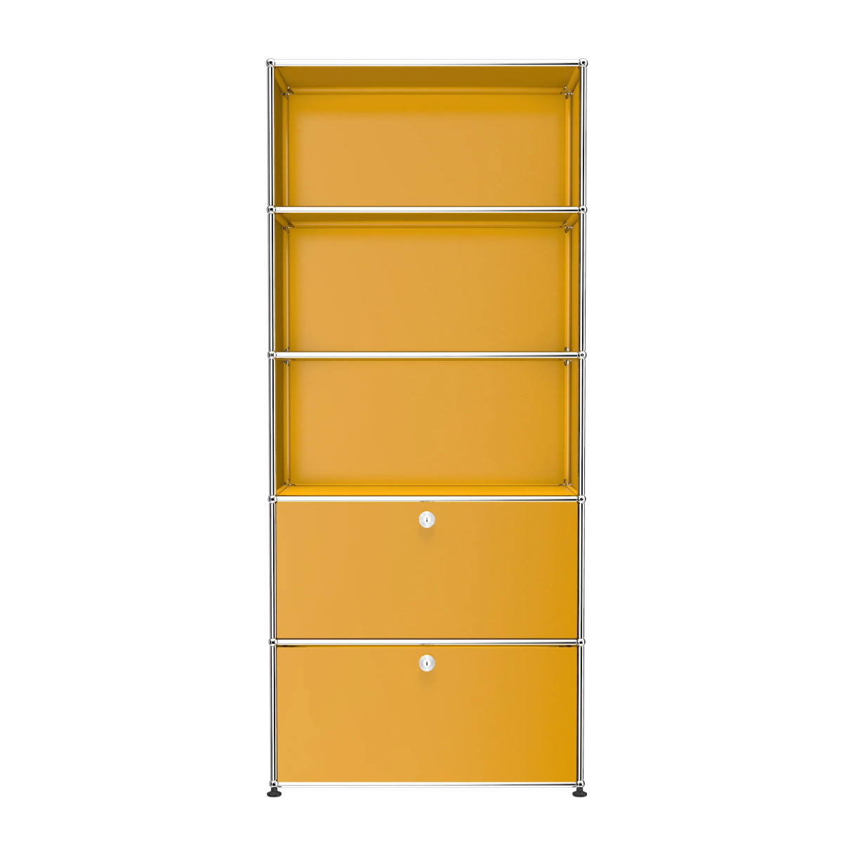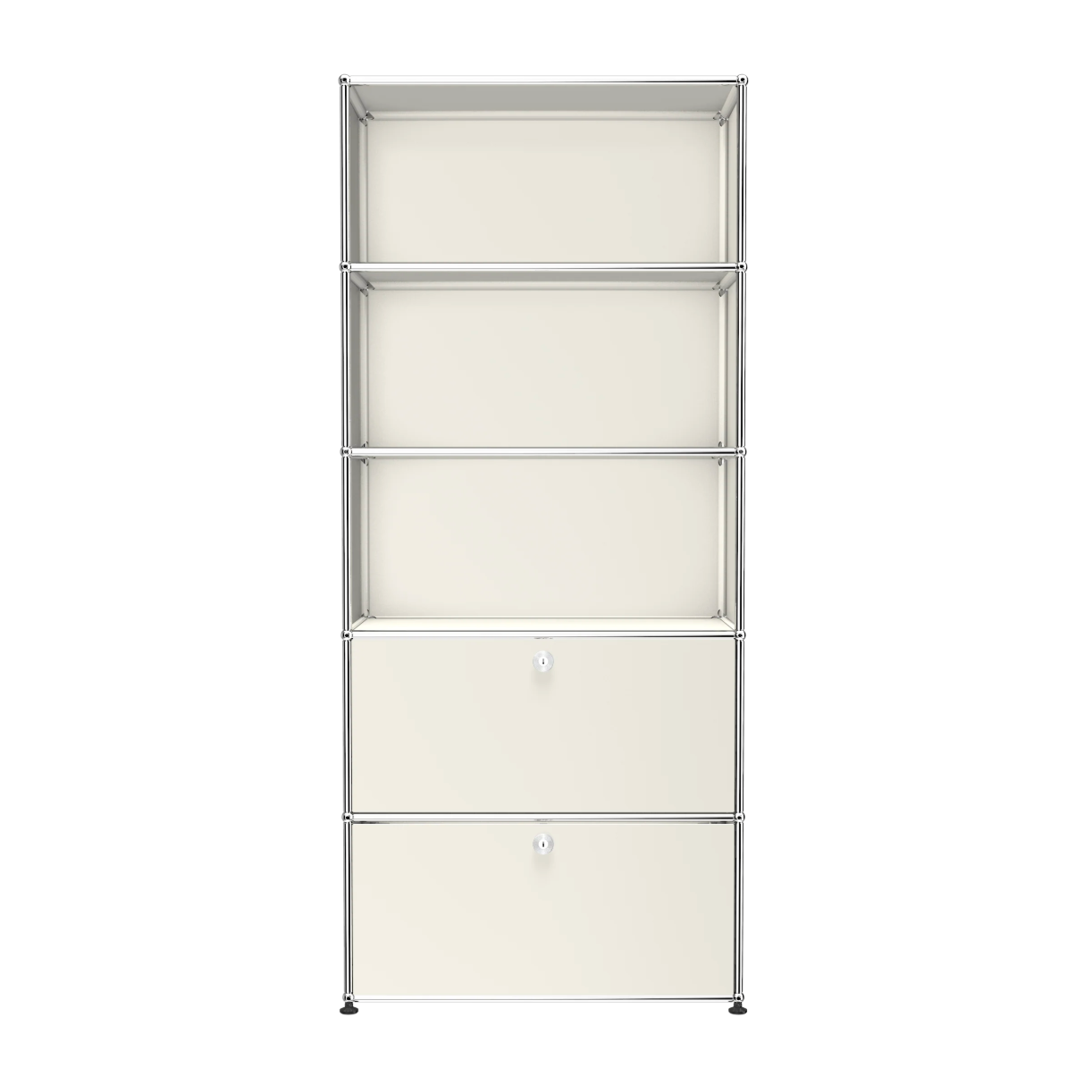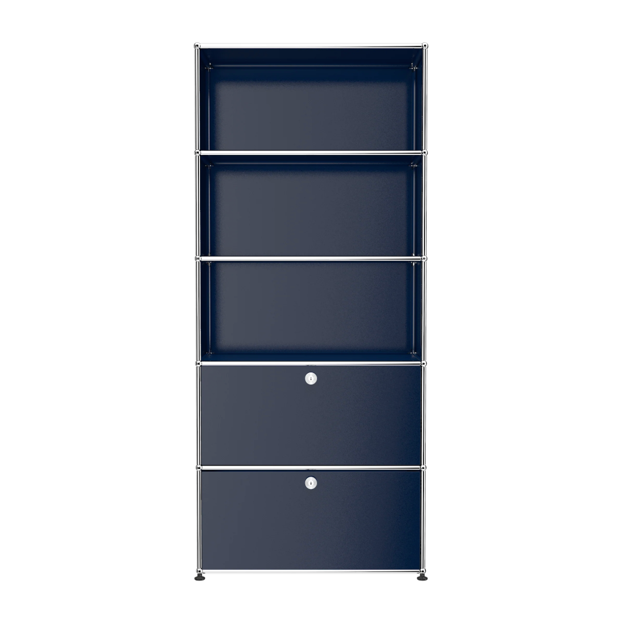 A versatile storage and shelving solution with one 14"H drop down door (top) and one 14"H drawer (bottom). Doors lock with the twist of a coin. Available in 14 standard surface colors.