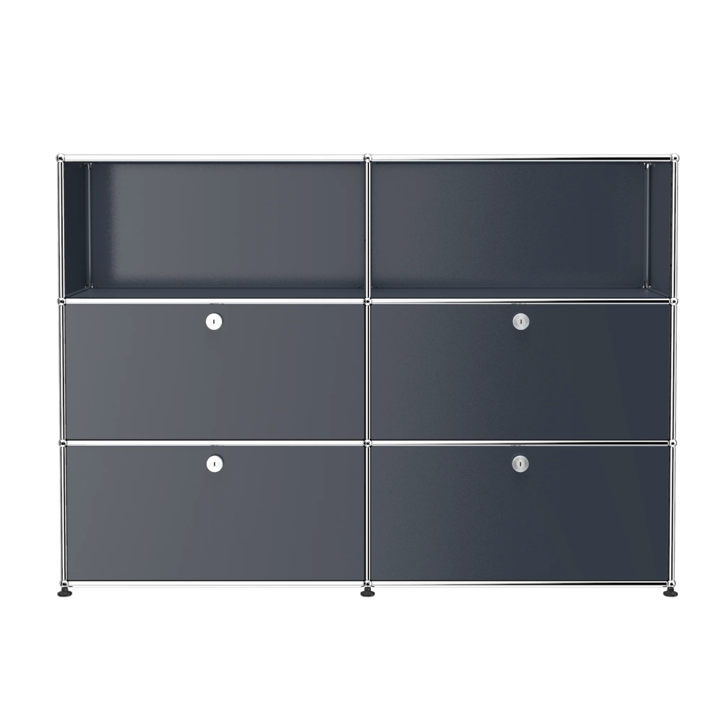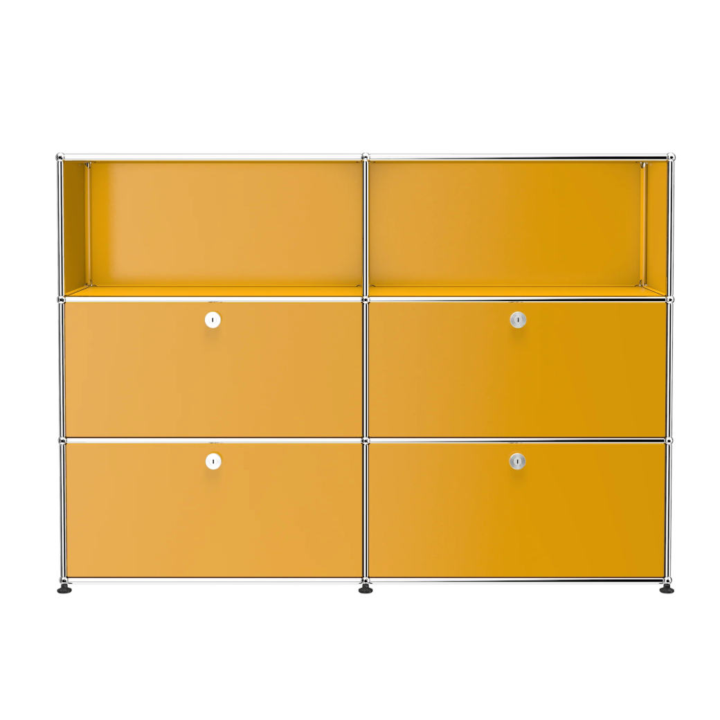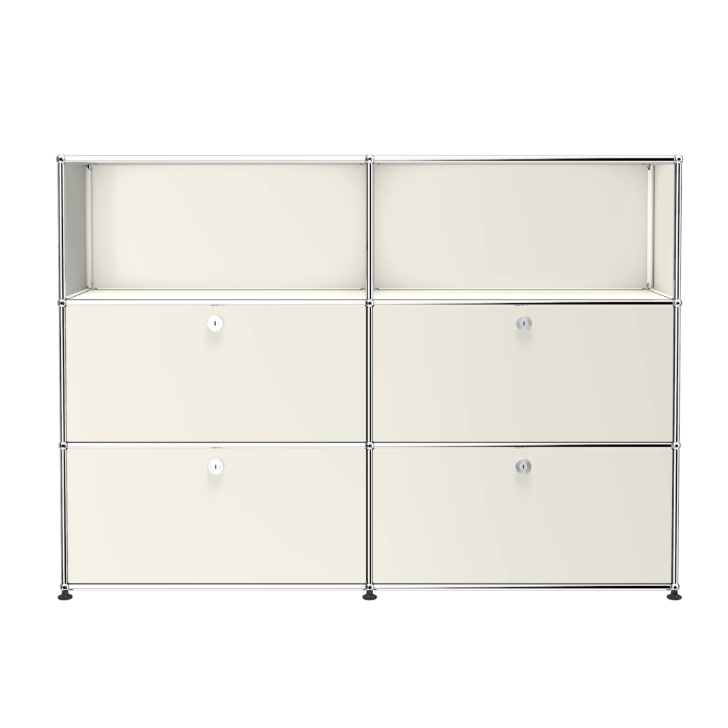 A multi-purpose storage unit with four 14"H drop-down doors that lock with the twist of a coin.