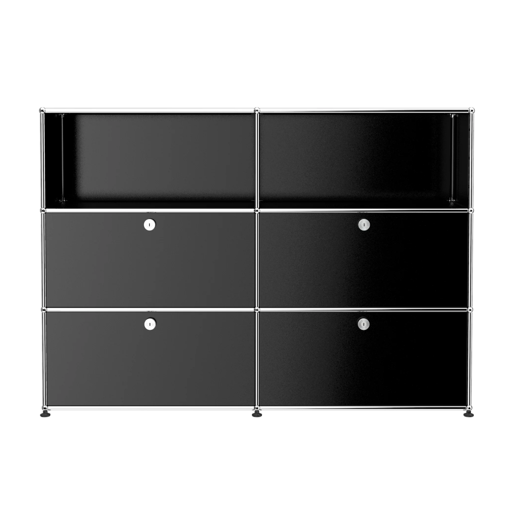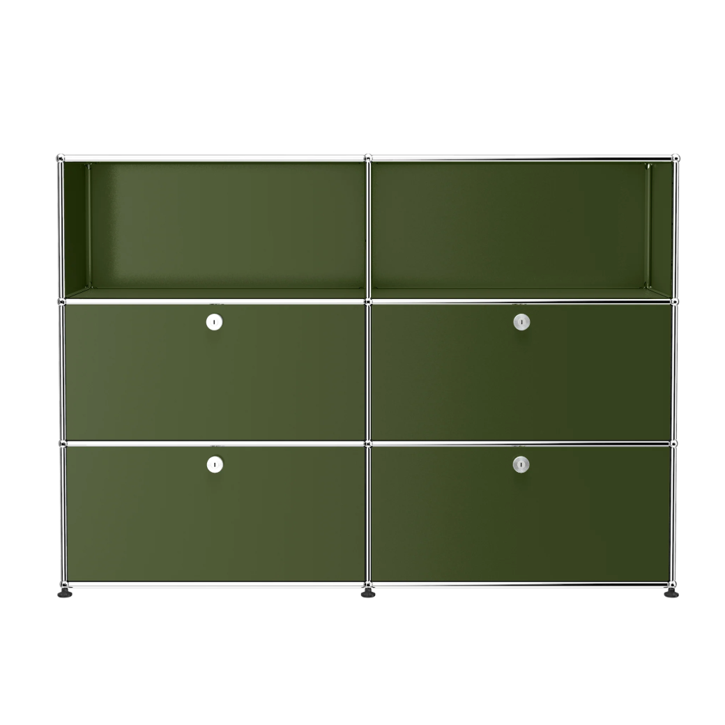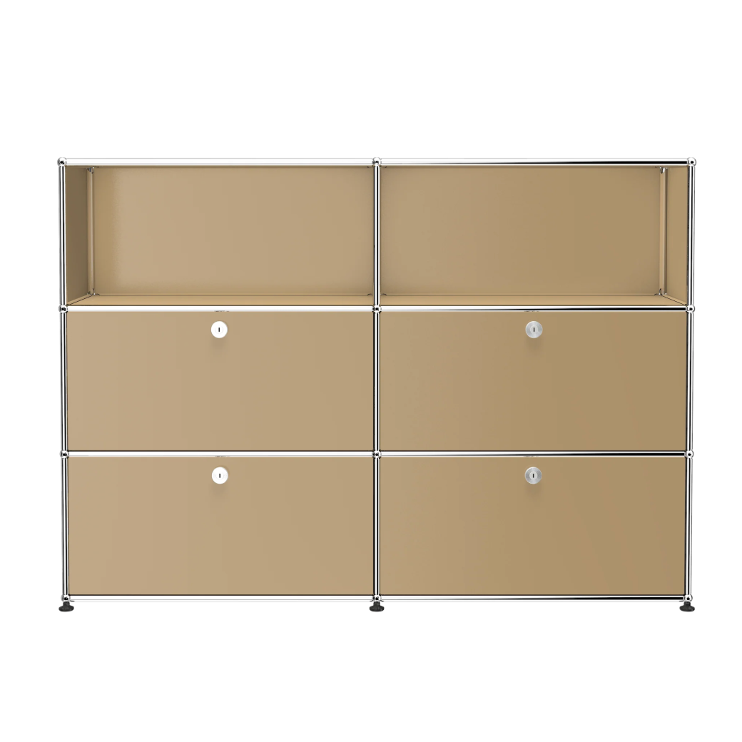 A multi-purpose storage unit with four 14"H drop-down doors that lock with the twist of a coin.