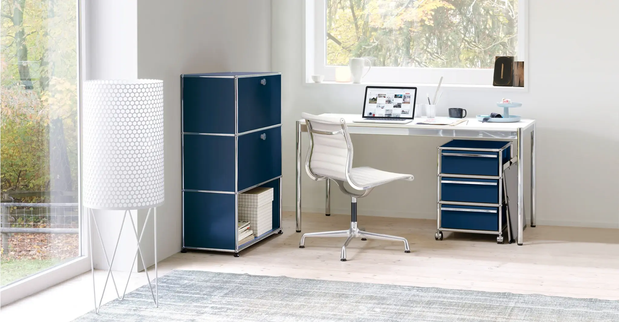 Powder coated steel panels available in pure white, anthracite grey, golden yellow, steel blue, or graphite black. Chromed tube frame.